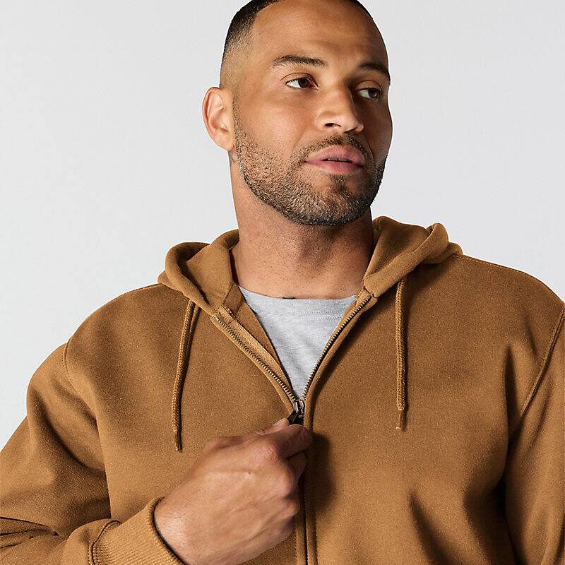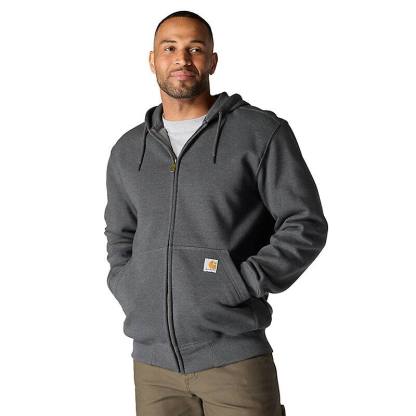 Don't let a little wet weather slow you down. This men's zip-hoodie gives you the familiar comfort of a favorite sweatshirt with the added benefit of keeping you dry in light rain. There's a hidden security pocket inside one of the two handwarmer pockets in the front. Previously known as the Rain Defender® Paxton Heavyweight Hooded Zip Front Sweatshirt