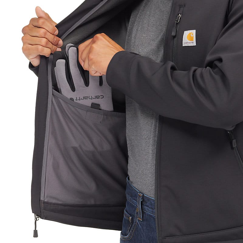 This men's jacket gives you the flexibility to move on the job while providing rugged defense against the elements. The heavyweight softshell construction holds its own through wind, cold, and light precipitation. It features a large pocket on the inside as well as three zip pockets on the outside. Previously known as the Crowley Jacket