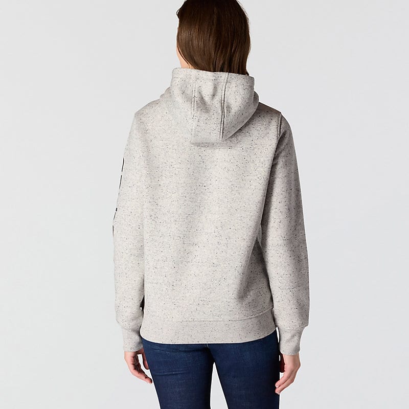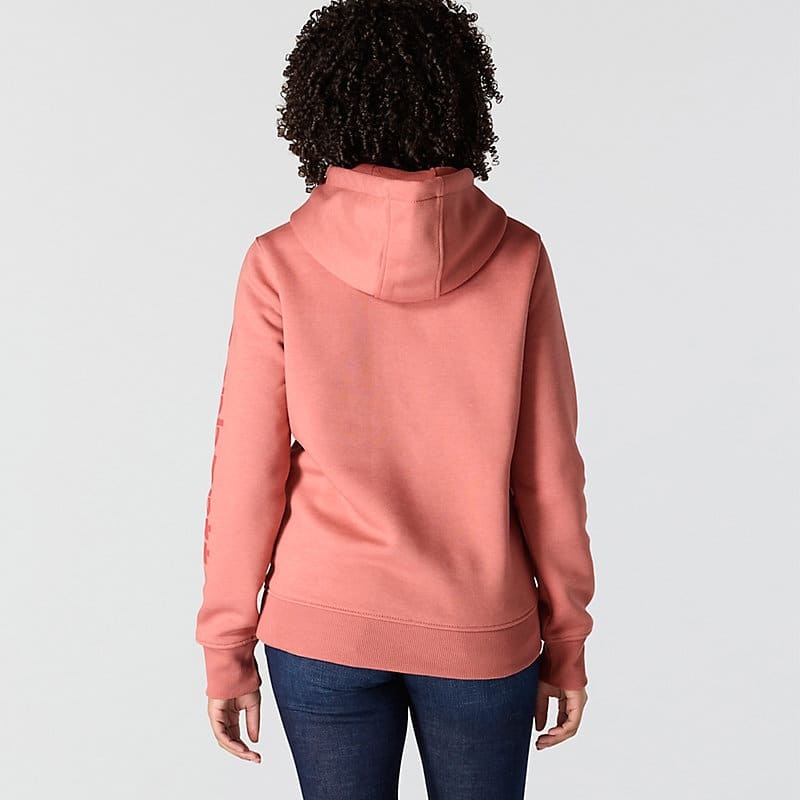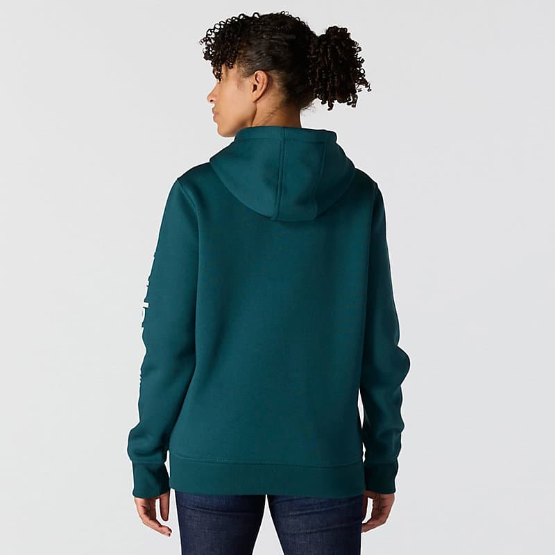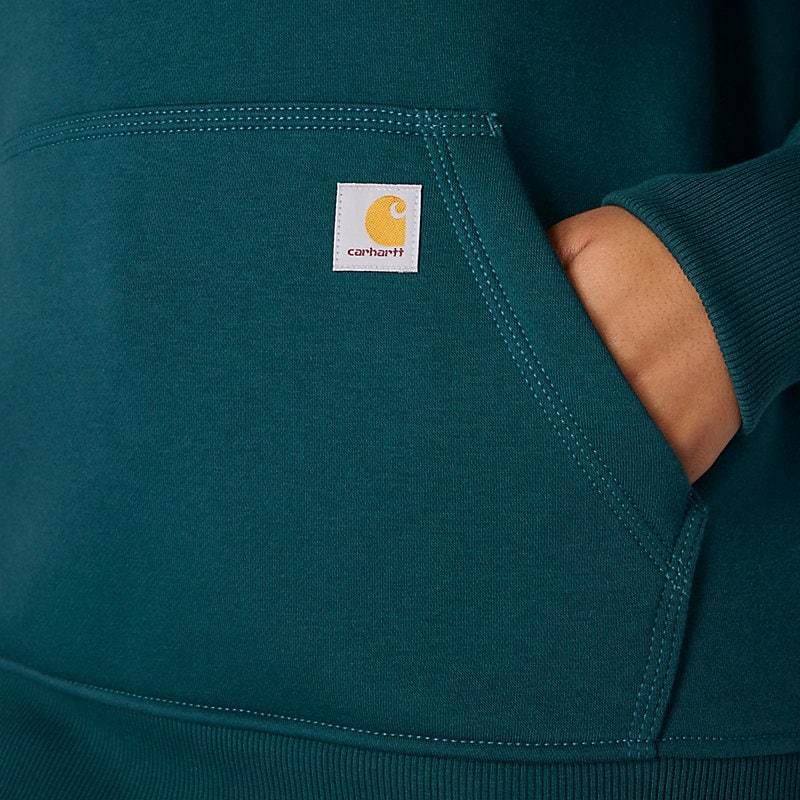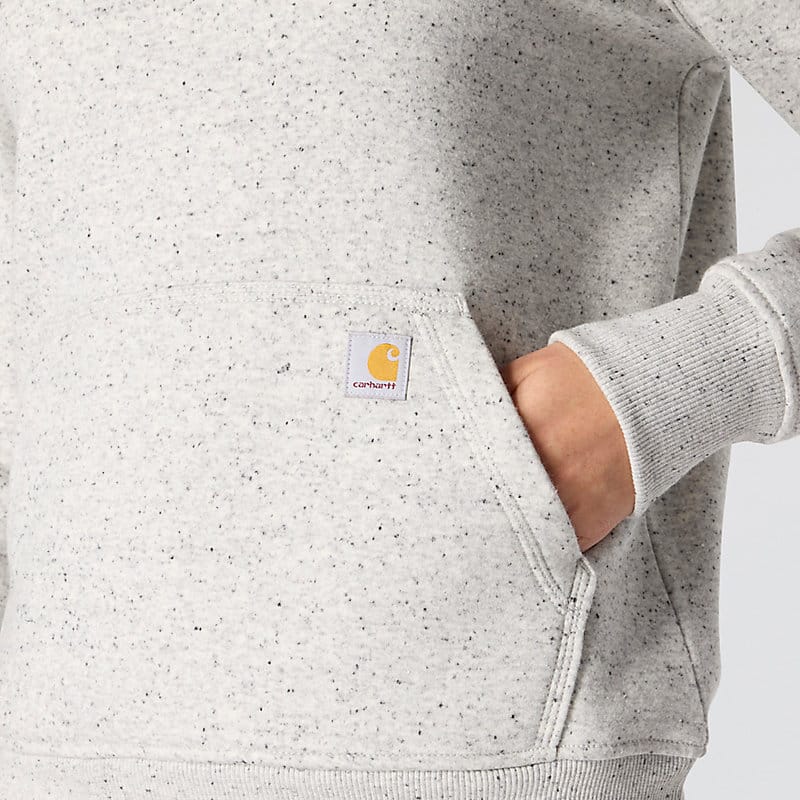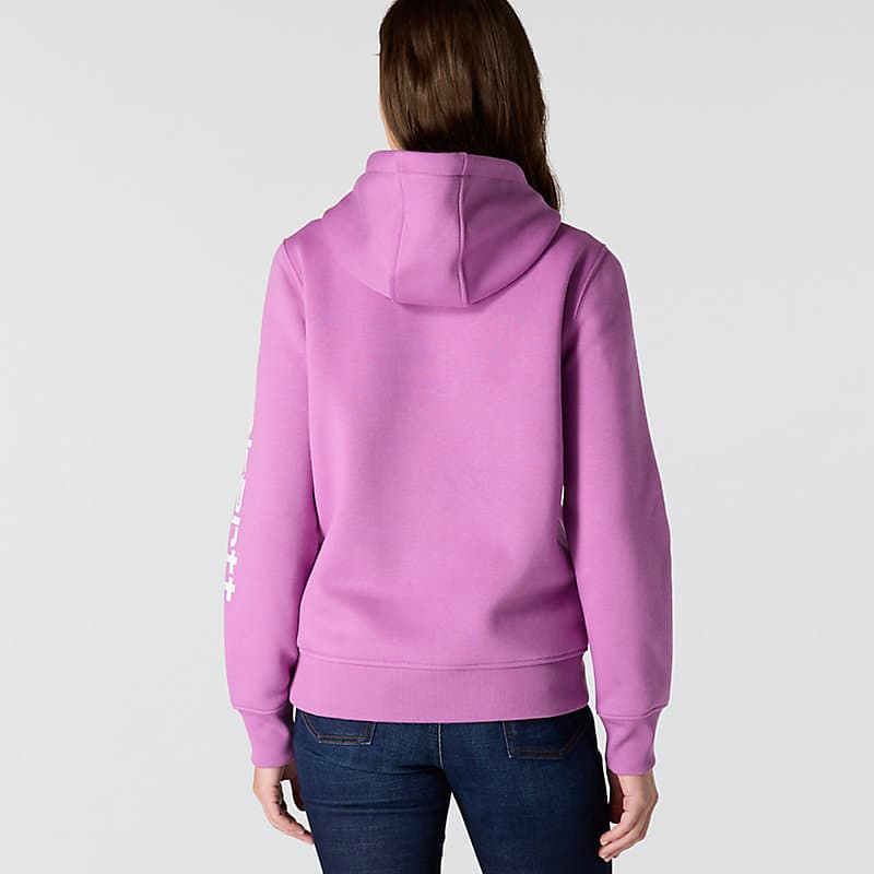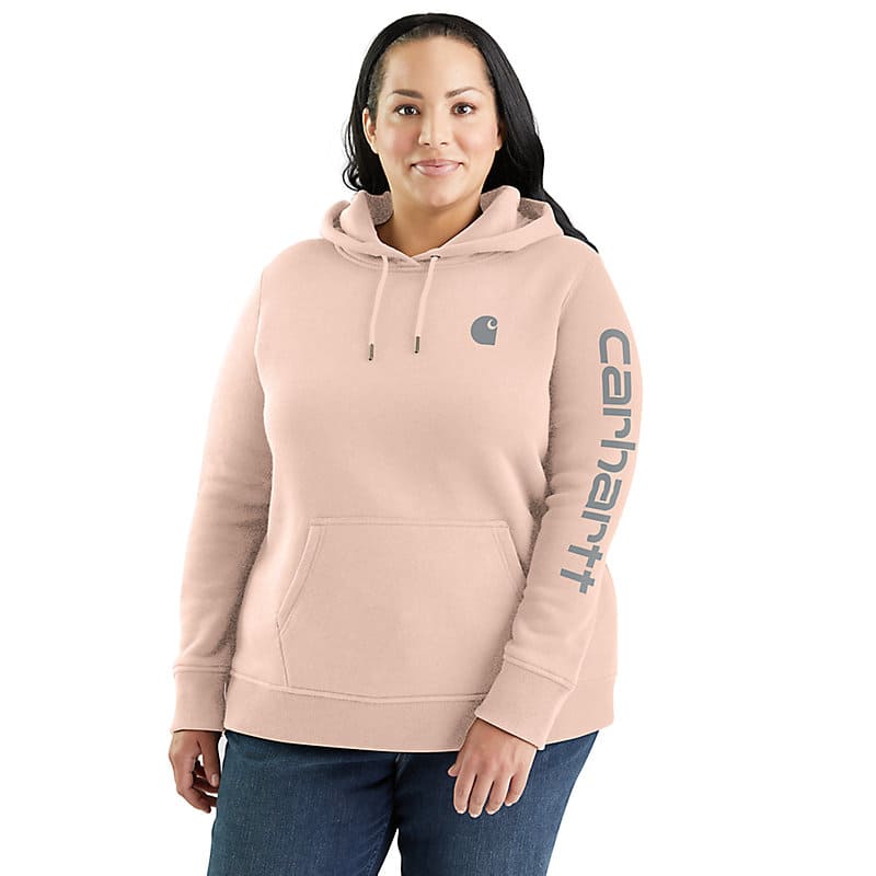 Cold winter mornings are a lot more comfortable with this women's cozy hoodie. Made of heavyweight fleece, the sweatshirt is brushed on the inside for extra softness. It has a relaxed fit that allows for easy layering, and it's finished with a Carhartt logo down the sleeve.