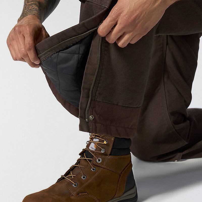 An update to one of our most popular lined bibs, the R27, these men's insulated bib overalls were designed using feedback from our Carhartt Crew. Made to hold their own through cold, wind, and light rain, they're the hardest-working overalls around with our heavyweight cotton duck and lined with lightweight 3M™ Thinsulate™ insulation for exceptional warmth. Reinforced kick panels, an updated, longer double knee, and triple stitching help ensure durability for the long haul. Compatible with the Carhartt Knee Pad.