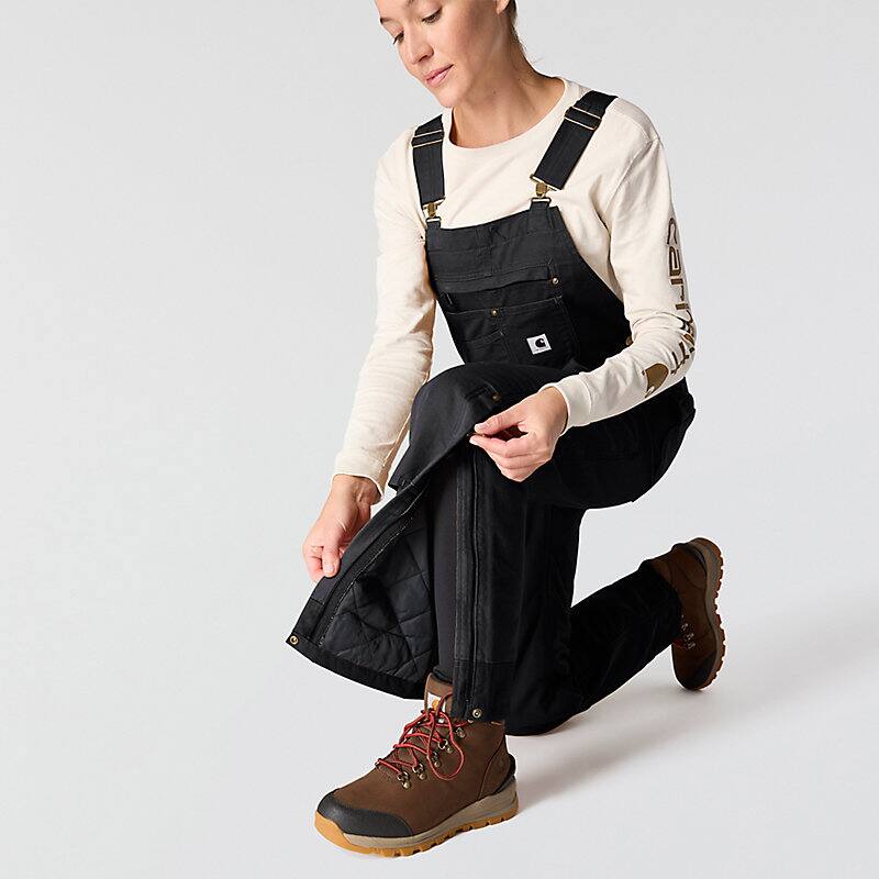 Made to hold their own through cold and wind, these heavyweight women's insulated bib's are the hardest working overall's around. They're constructed of rugged ringspun duck with flex side panels for a comfortable fit. The quilted nylon lining is insulated through the legs making them ideal women's snow bibs or even women's ski bibs, while the reinforced kick panels provide the long-lasting durability you need on the jobsite as well.