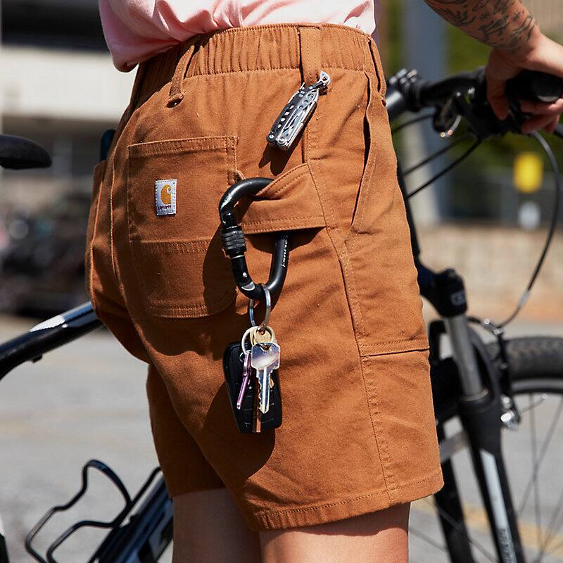 Squatting and lifting isn't just for the gym. Whether you're landscaping, farming, or loading up boxes, these women's Carhartt work shorts give you the freedom to move. They're made from durable canvas with built-in stretch. The flexible waistband lets you bend and twist without feeling held-back.