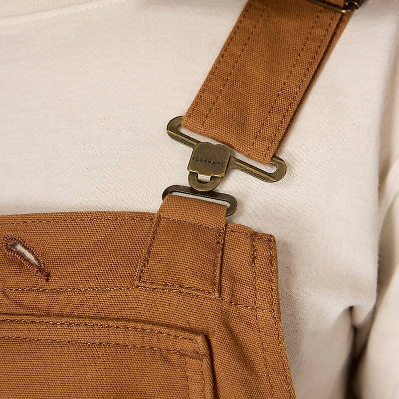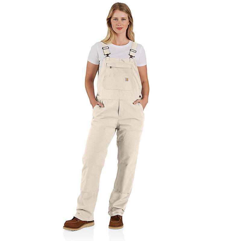 These women's bibs have the classic look of our duck overalls, but with a soft stretch-canvas construction that gives you full freedom to move. The zip pocket on the chest is large enough to fit a phone, and the several slip-in pockets have various sizes to accommodate your different tools. A double layer at the knees increases the durability factor plus gives you a place to stick your knee pads.