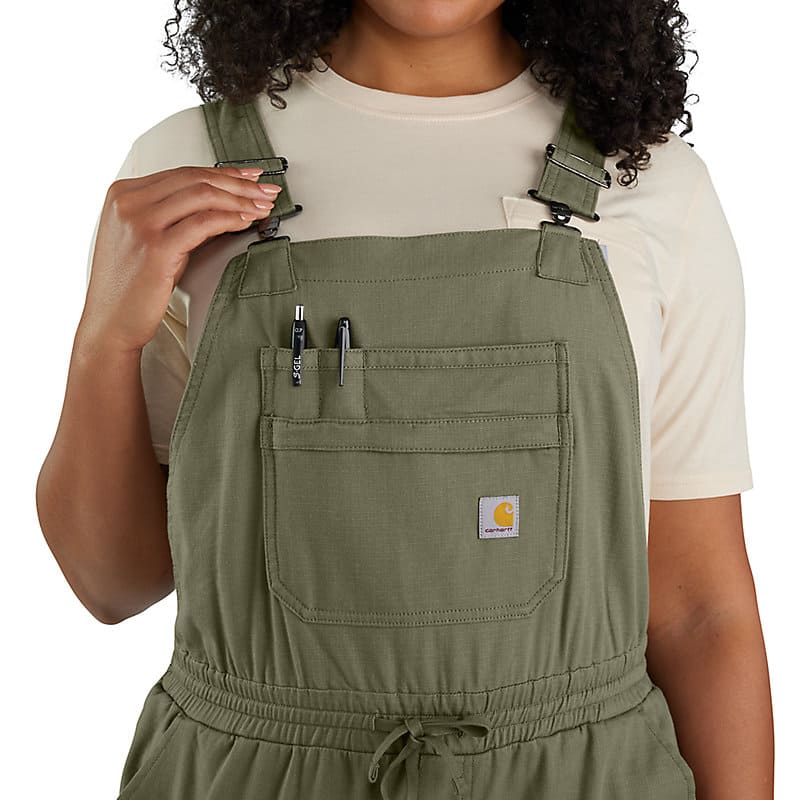 Construction site or cramped attic, you'll stay cool and comfortable in these women's overalls. They have all the durability you expect from the Carhartt name, but they're made for warmer weather. A ripstop cotton blend fights sweat and dries fast, plus they're built with extra flex for easy movement. A multi-compartment bib pocket keeps small items organized.