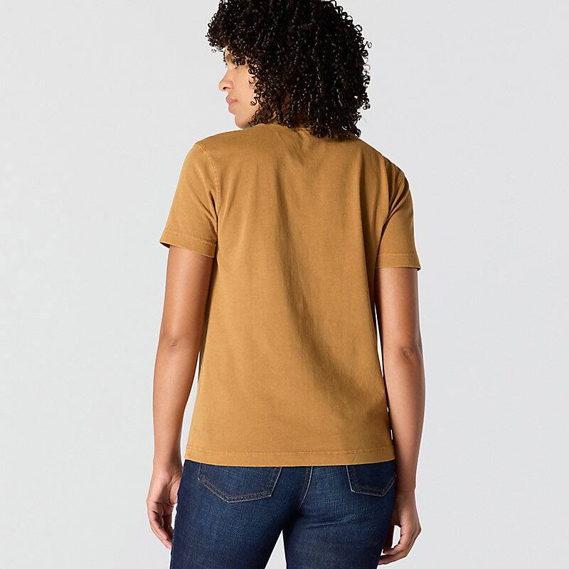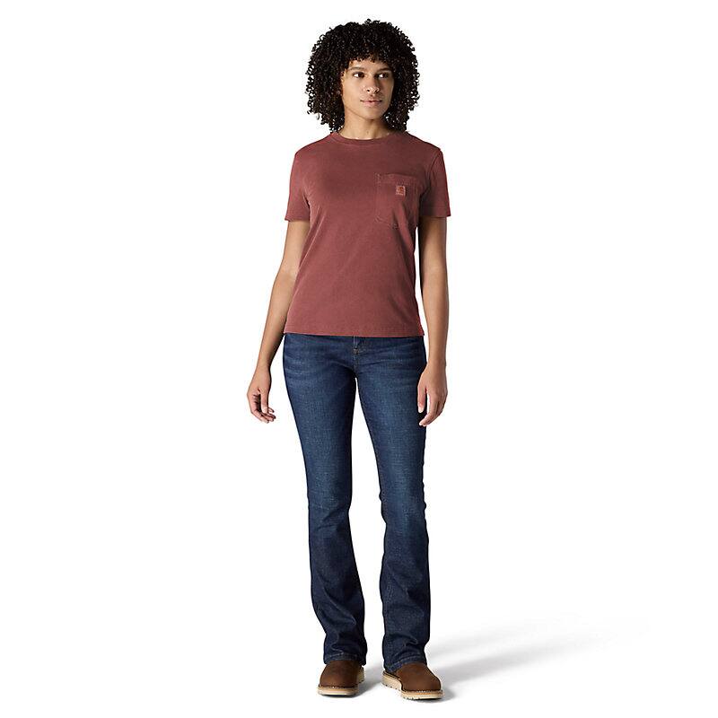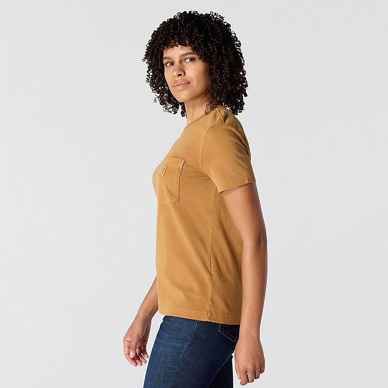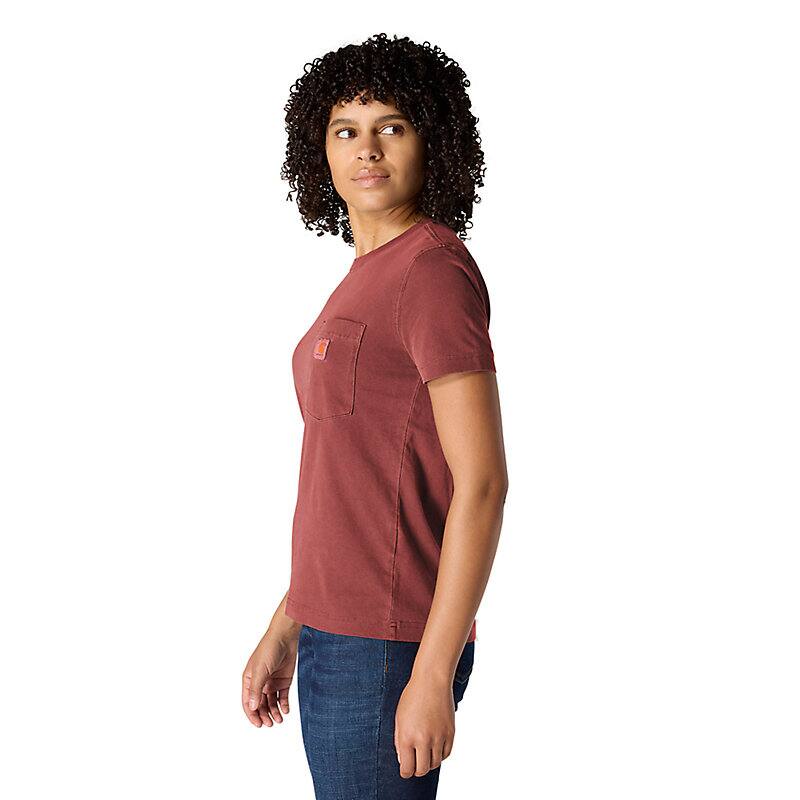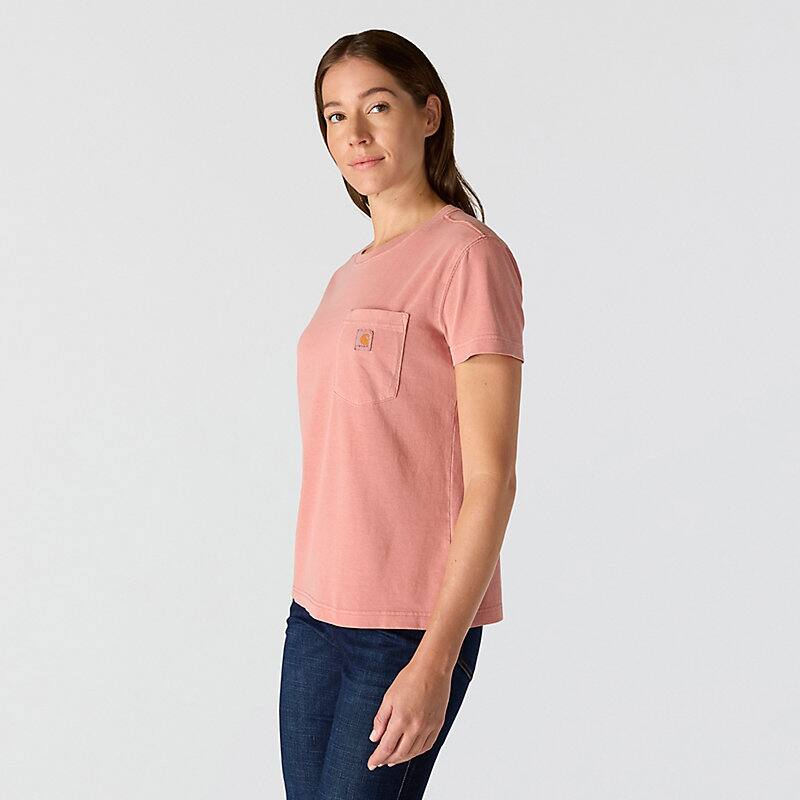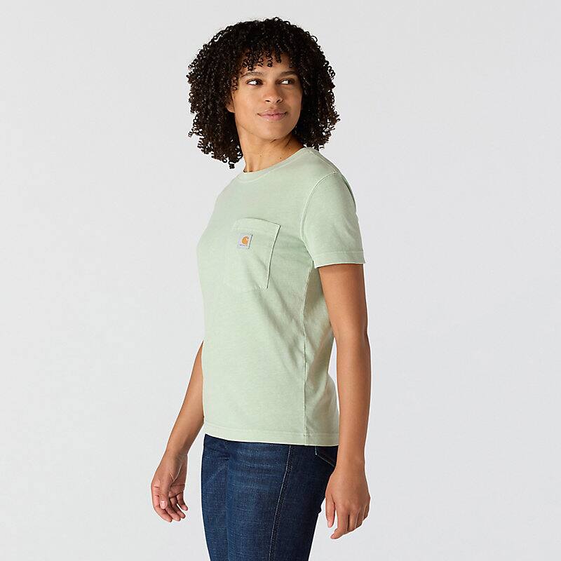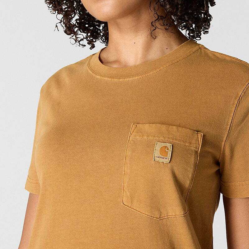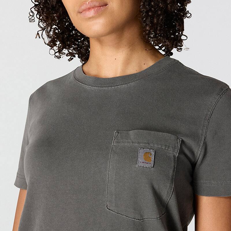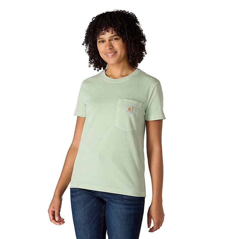 A century of tough jobs and even tougher folks have built the Carhartt name. This women's pocket t-shirt honors that legacy with a chest pocket and a worn-in, garment-dyed look. Cotton feels lightweight and soft from first wear.