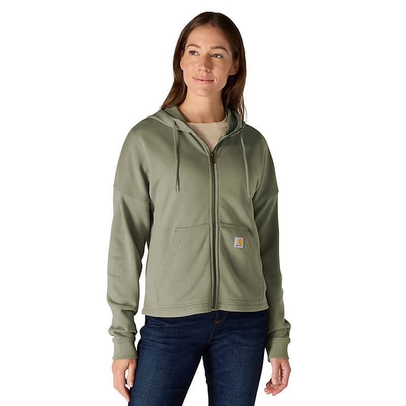 For comfort that works 24/7, throw on this women's TENCEL™ hooded sweatshirt from Carhartt. Built with TENCEL™ fibers for a soft, breathable feel that doesn't sacrifice durability. Made for a loose fit, with dropped shoulders.