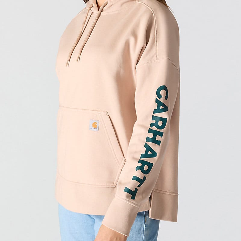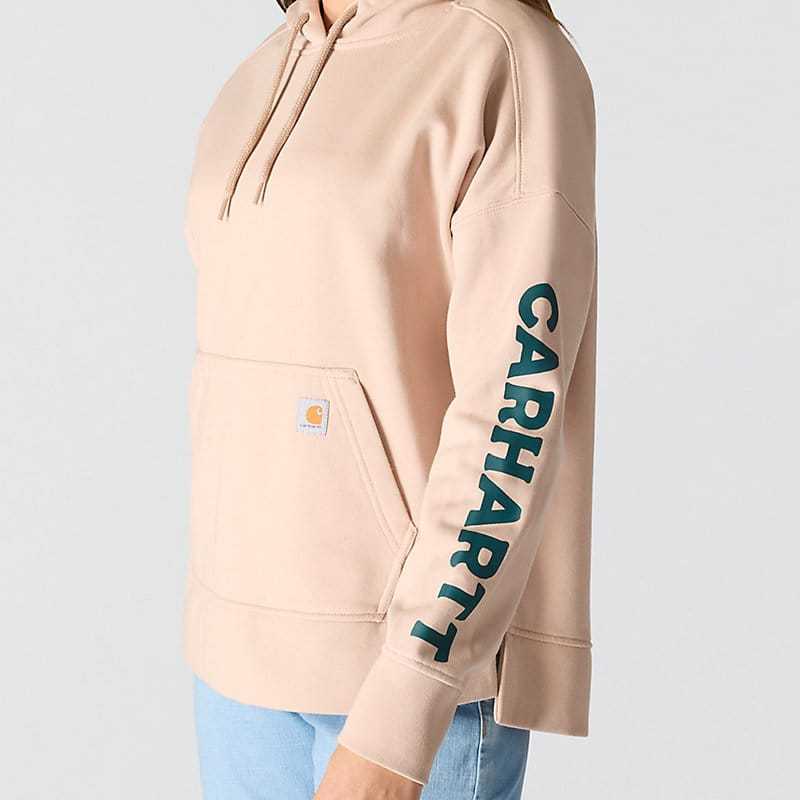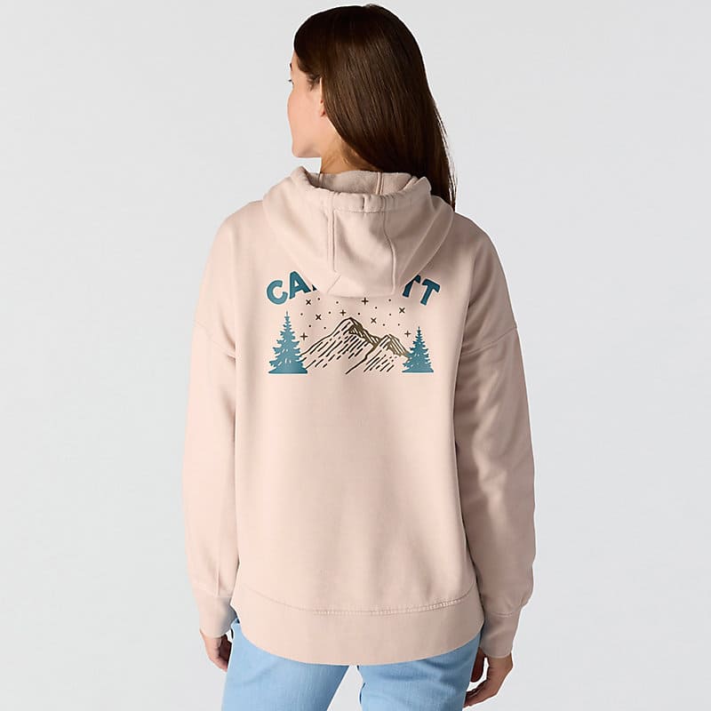 Peak comfort. With mountain graphics on back, this women's hooded sweatshirt pays tribute to fresh air and stunning views. It's built with a midweight cotton blend and oversize cut that feels cozy on the job or off.