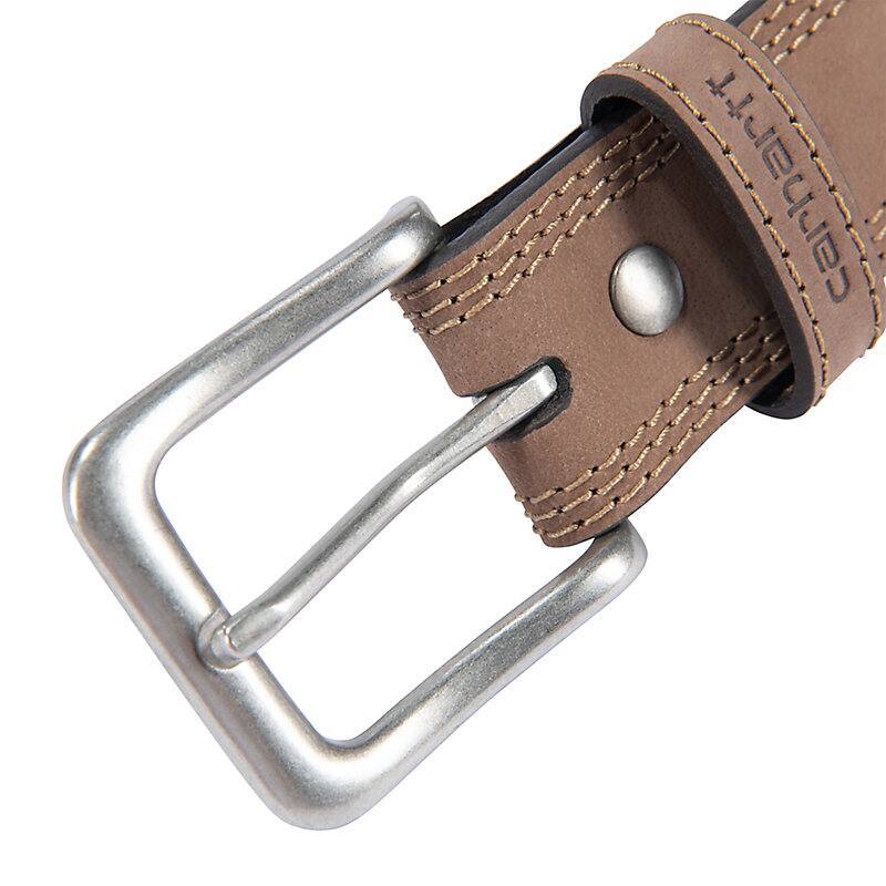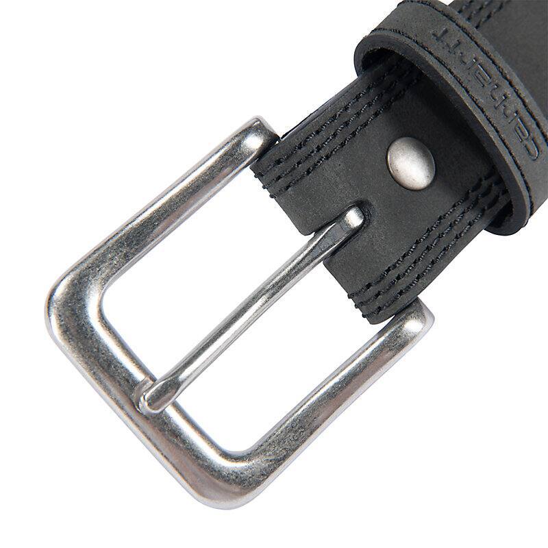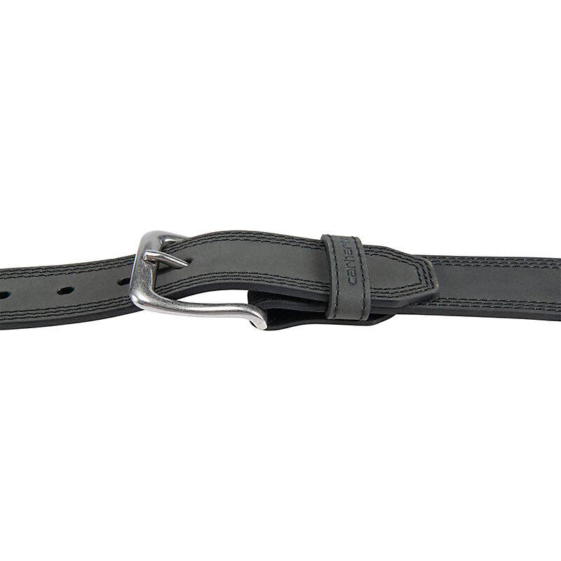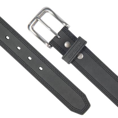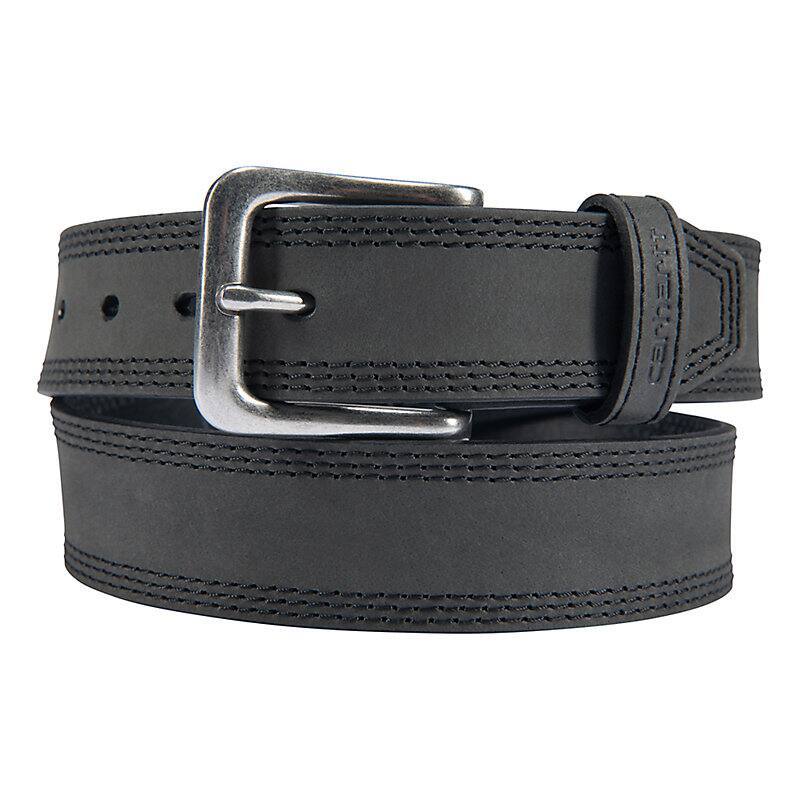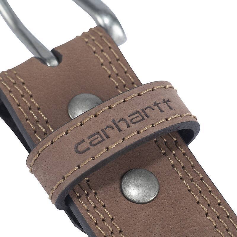 Rugged and durable, this men's belt is made to get the job done. Top-grain saddle leather with triple stitching gives it a heritage look. A removable buckle is easy to switch out. It's finished with a debossed Carhartt logo on the belt keeper loop.