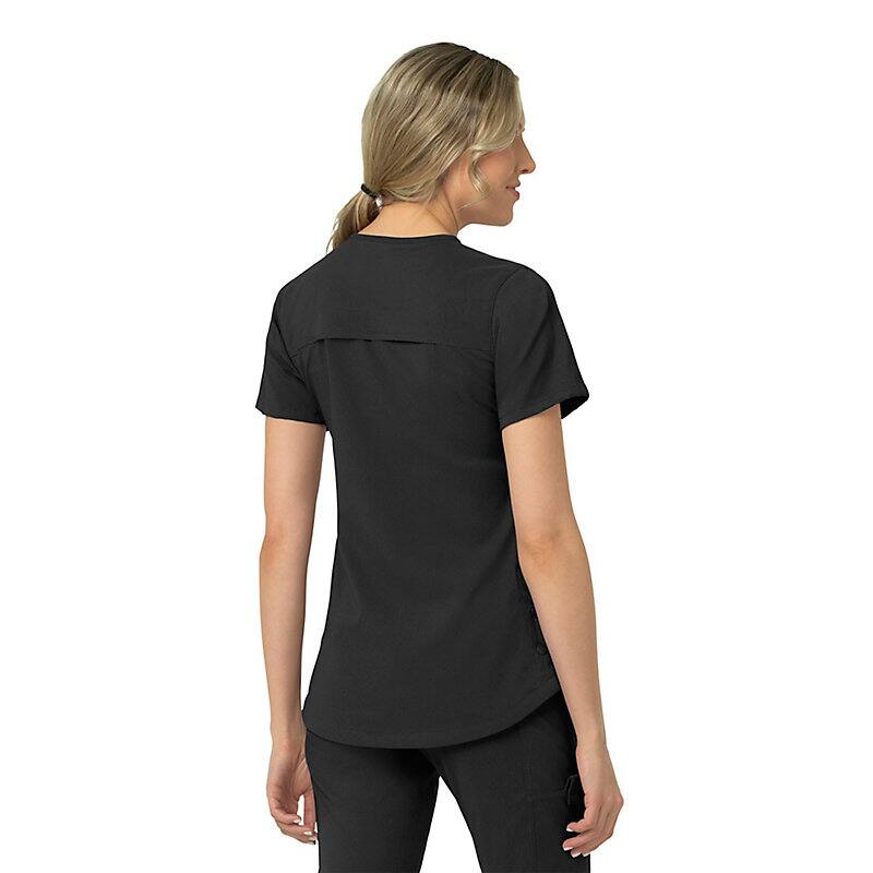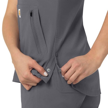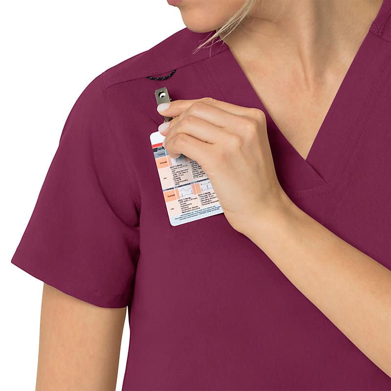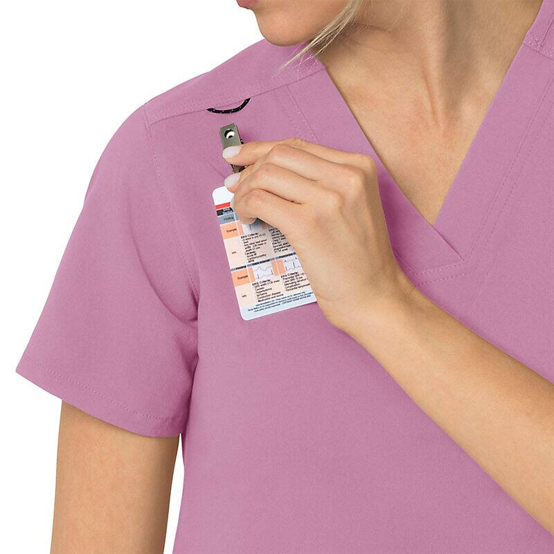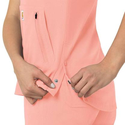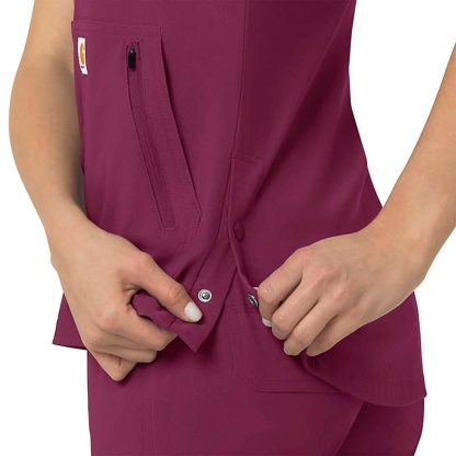When your workday is non-stop, this women's scrub top keeps you cool and comfortable. Polyester fabric with built-in flex repels water and water-based stains. A mesh-lined back panel allows the air to flow as you move through busy shifts. Multiple pockets, including two angled zip pockets, keep supplies within easy reach.