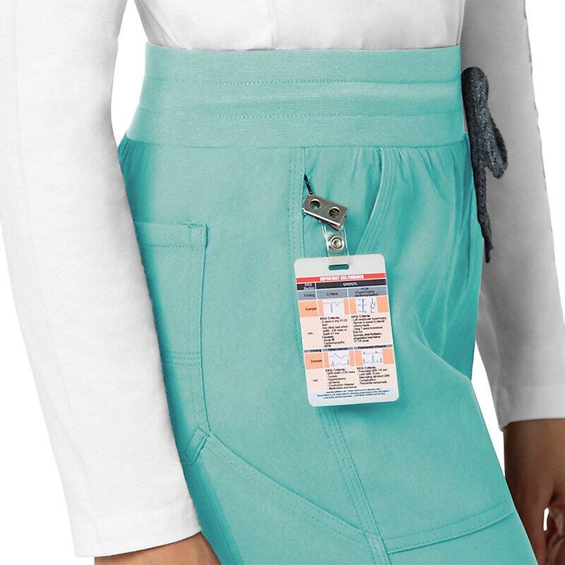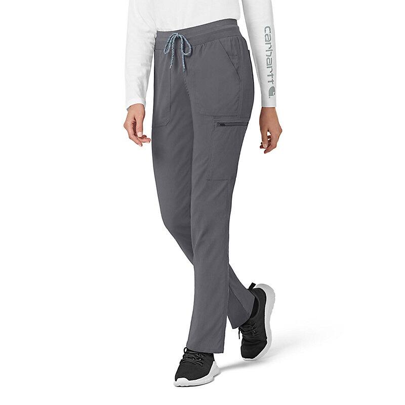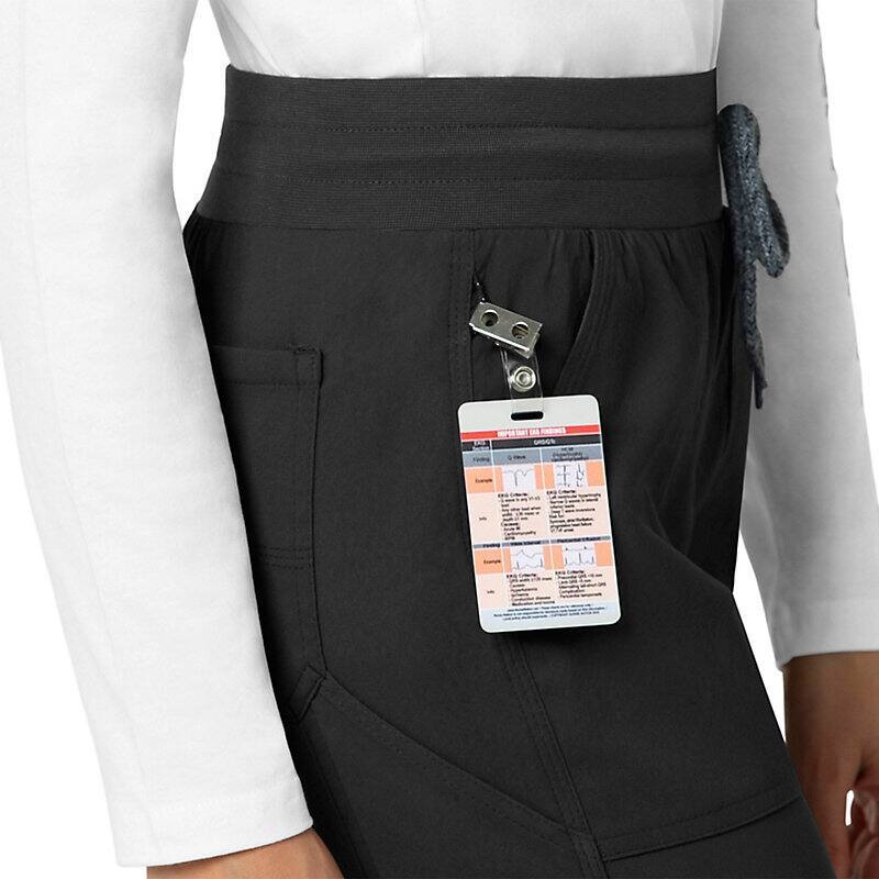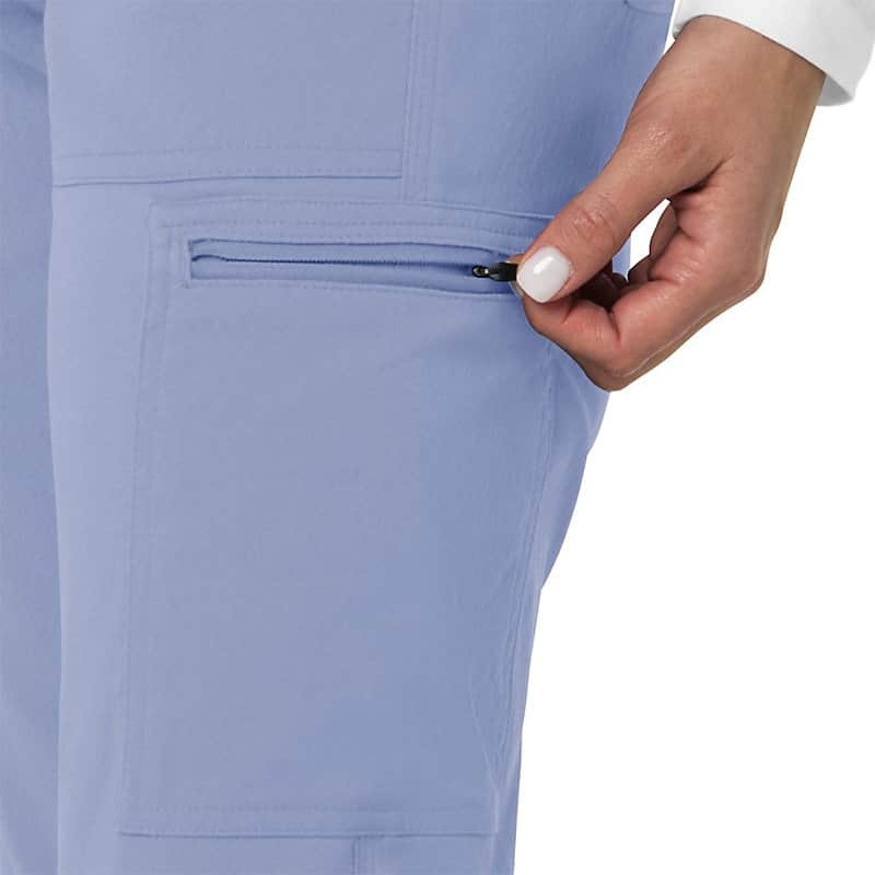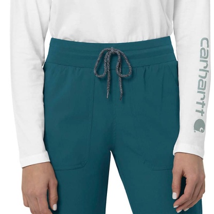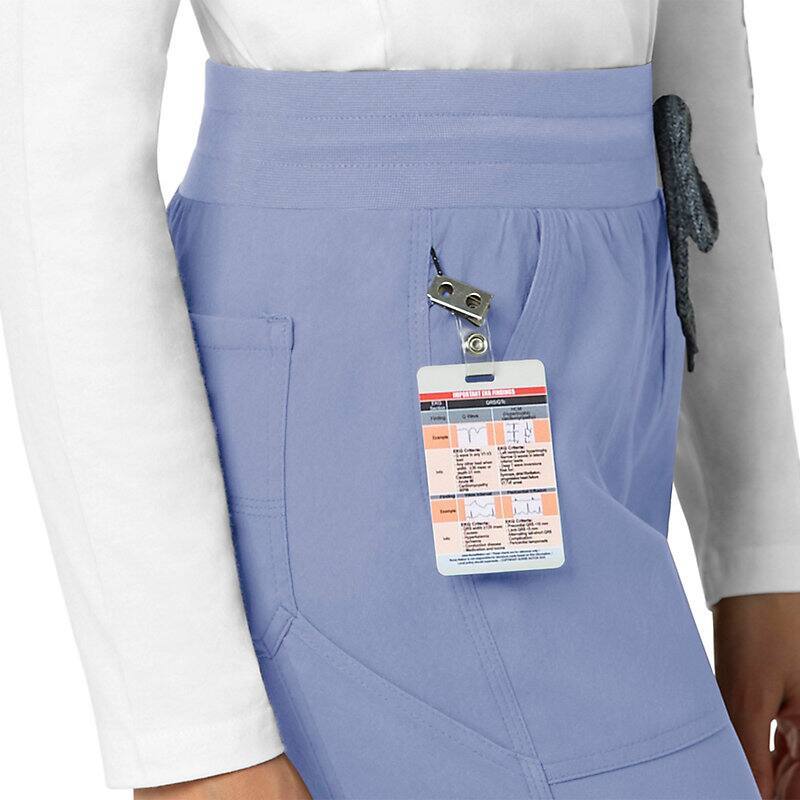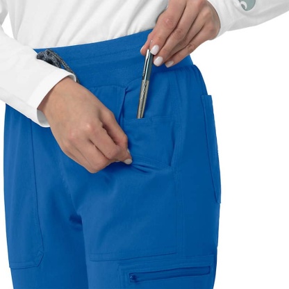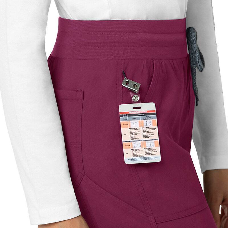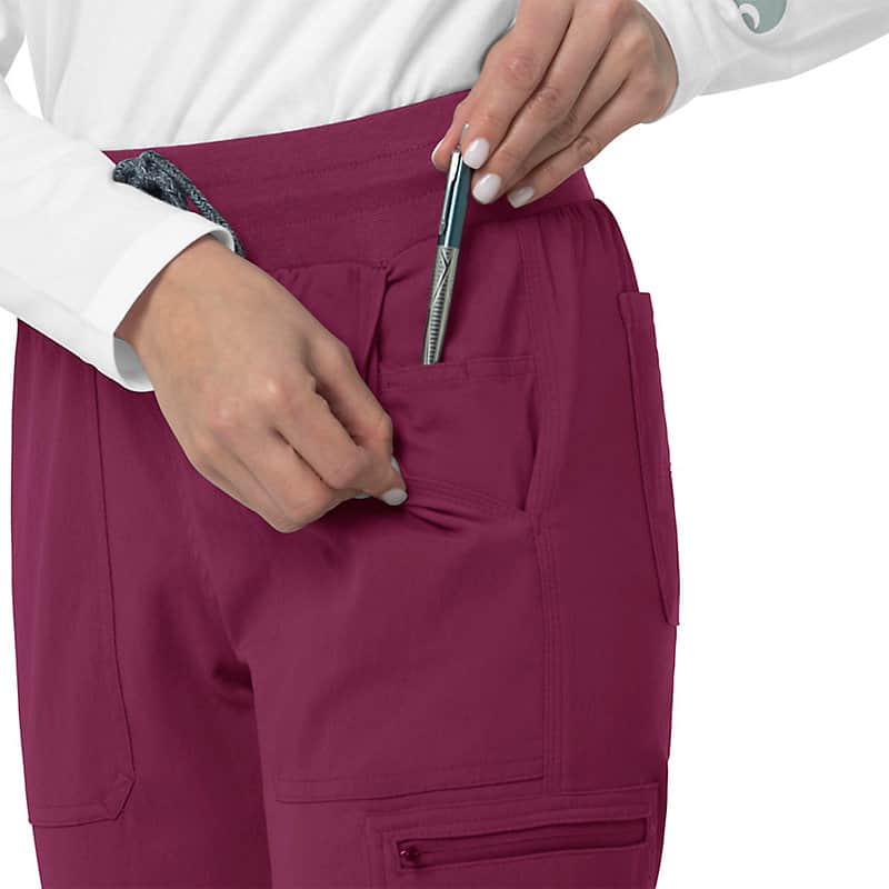 When the shifts are long and the pace is fast, these women's scrub pants deliver comfort and ease of movement to help you get the job done. Polyester fabric with built-in flex repels water and water-based stains. Multiple pockets, including a carpenter pocket with a scissor holder, give you space for your supplies.