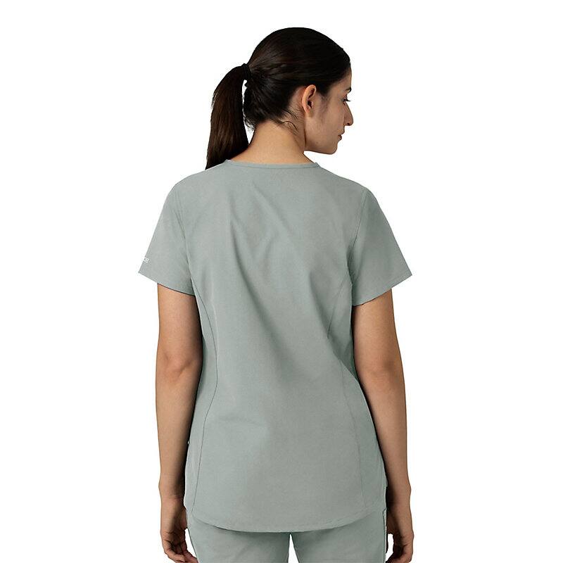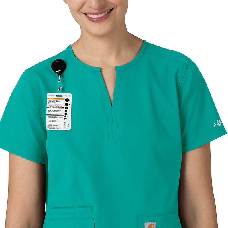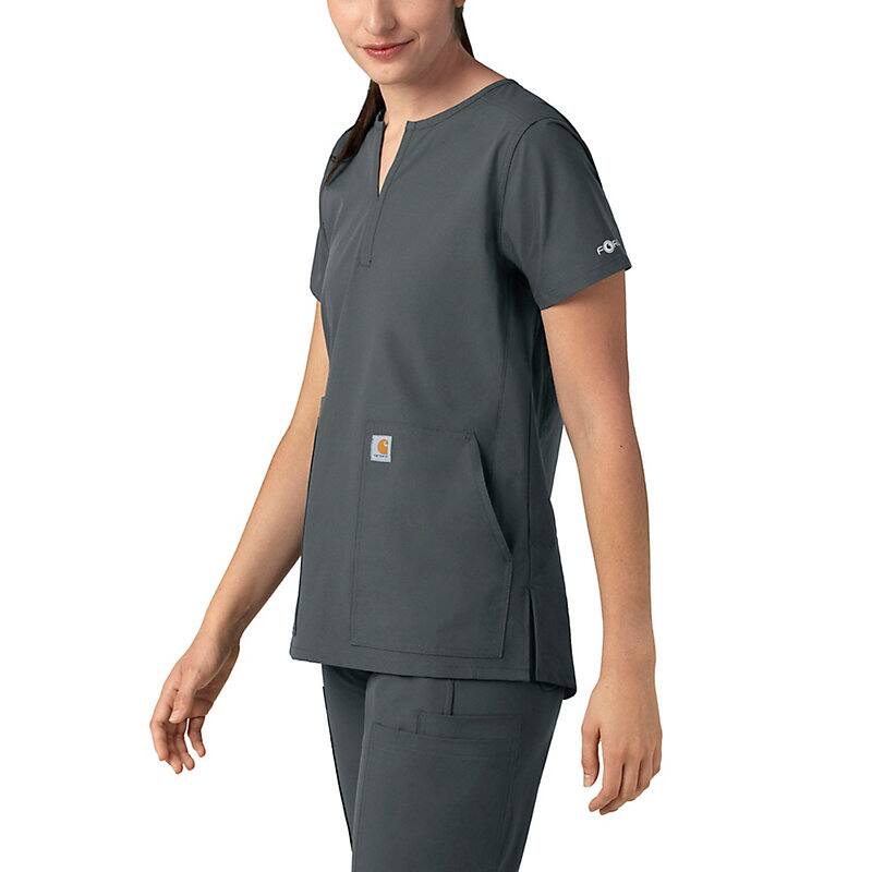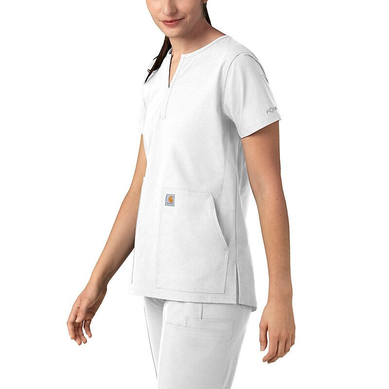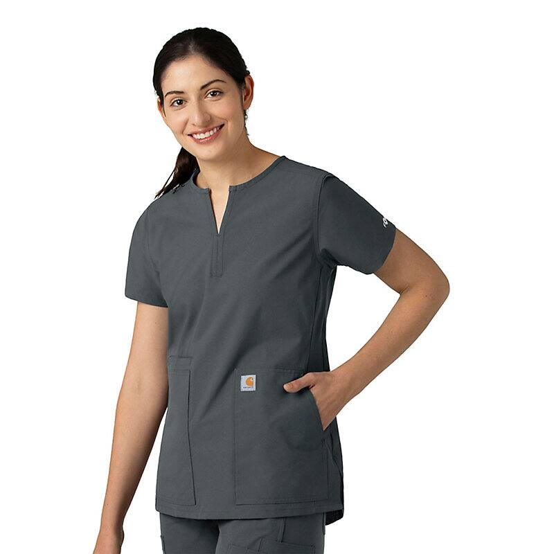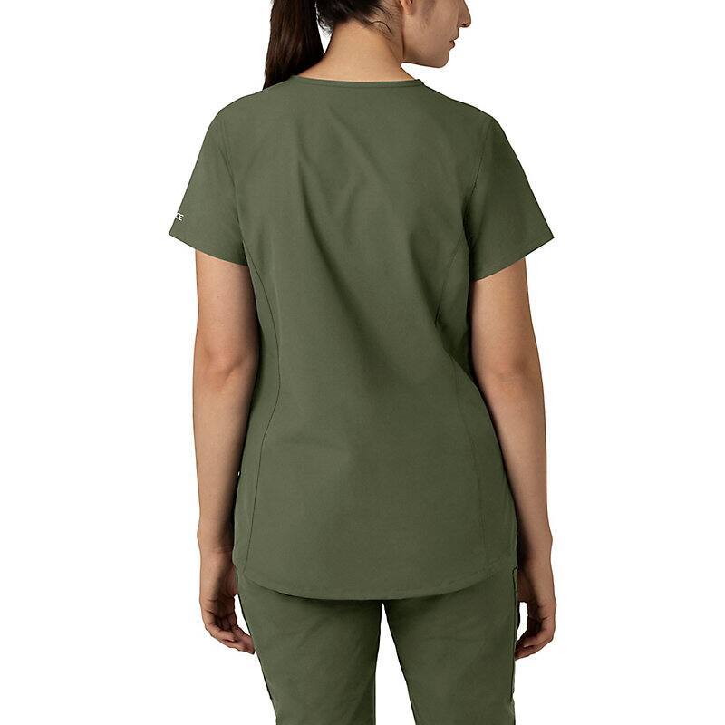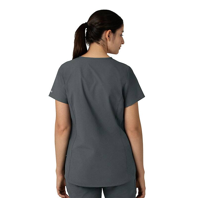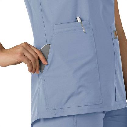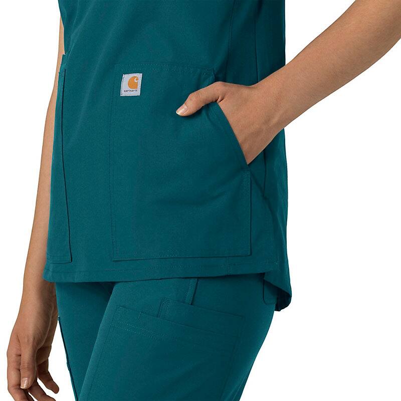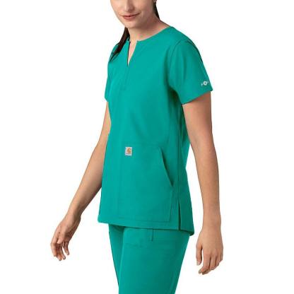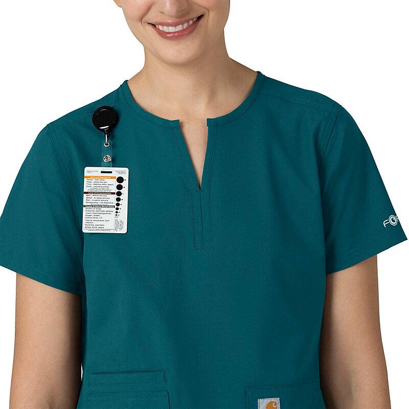 Keep all the things you need for a busy shift close at hand with this women's scrub top. The polyester-blend fabric has built-in flex so you can maneuver through small spaces or reach for supplies with ease. A cell phone pocket and earbud holders give you easy access to your electronics.
