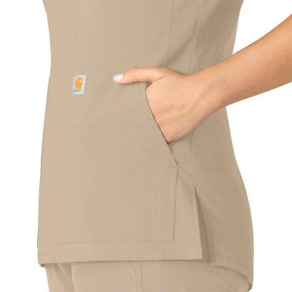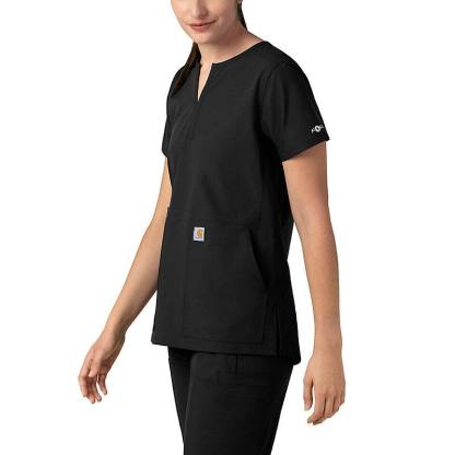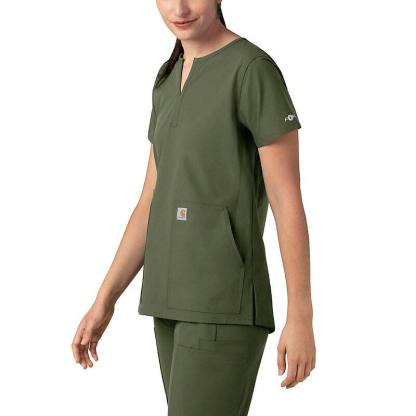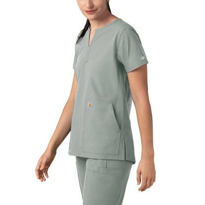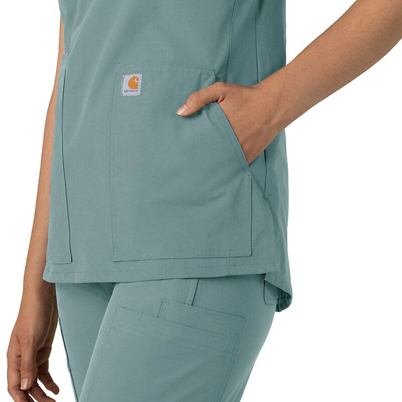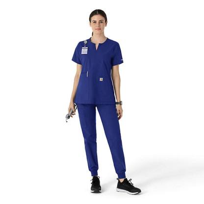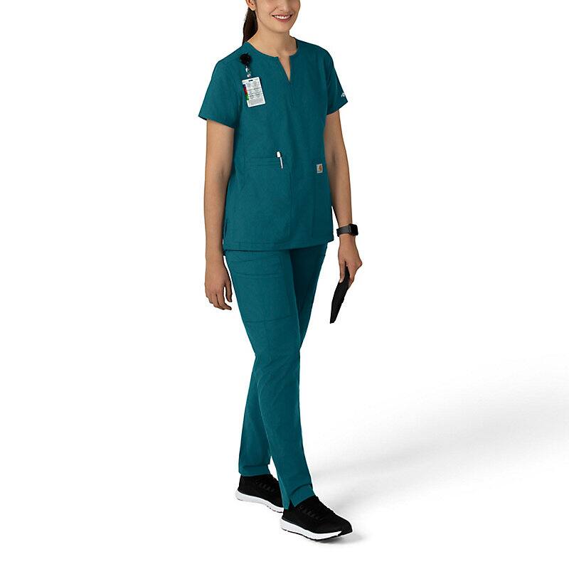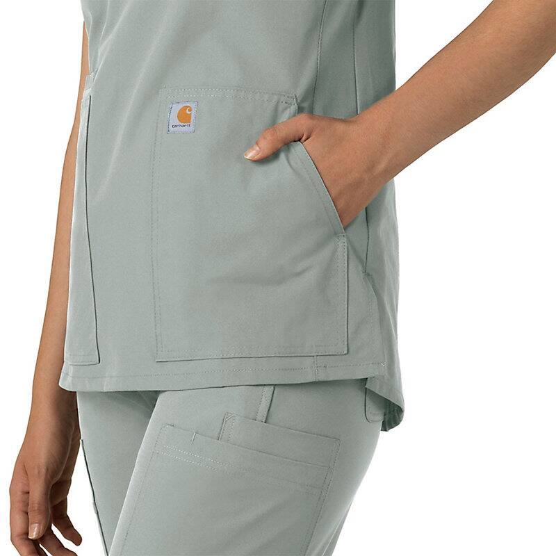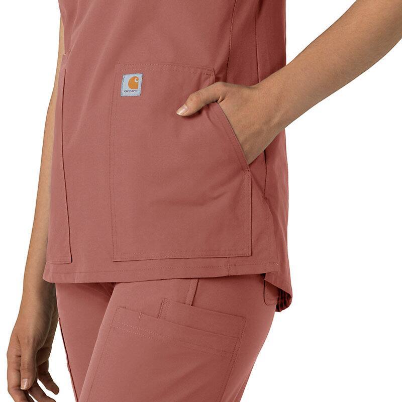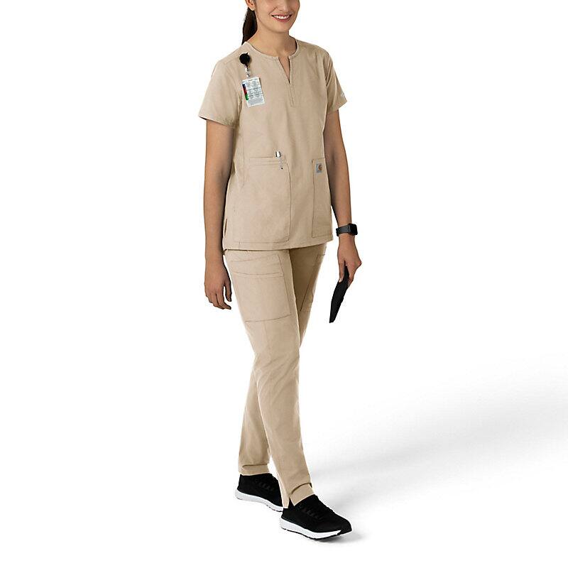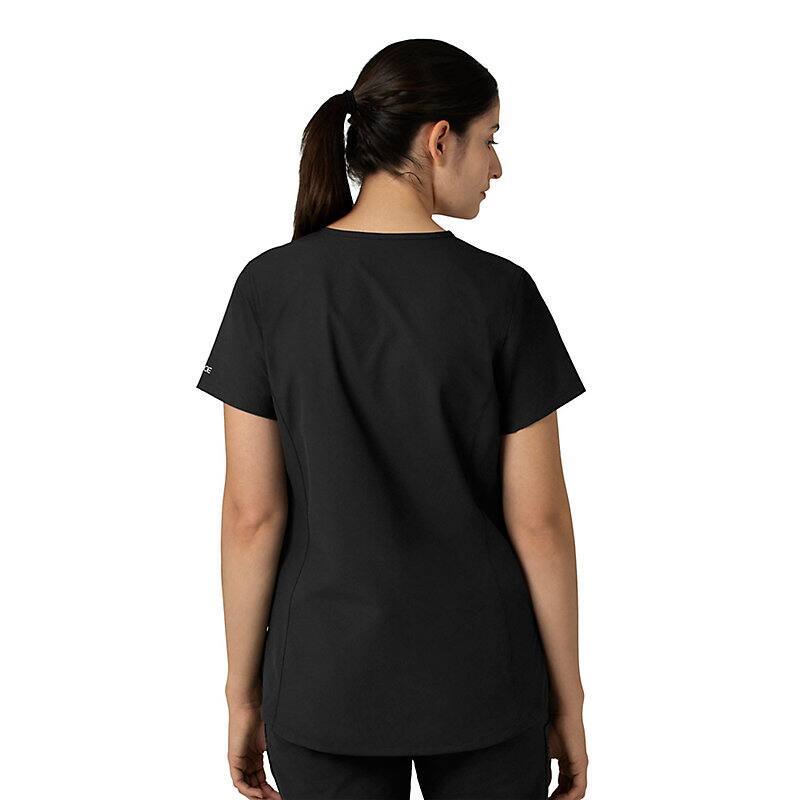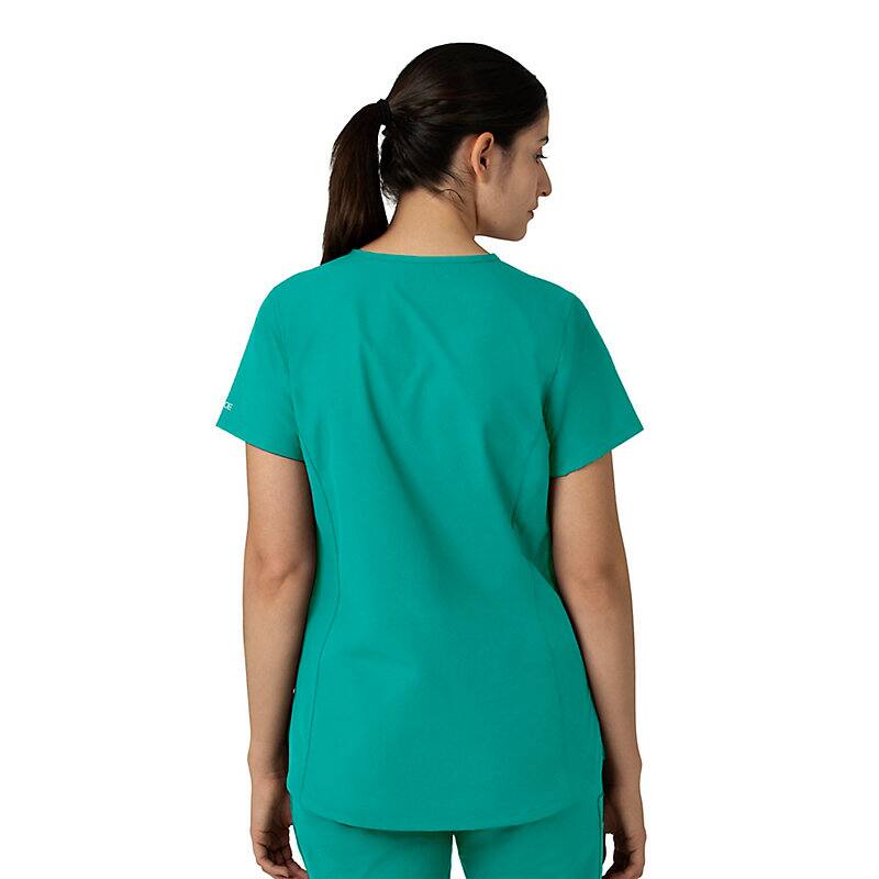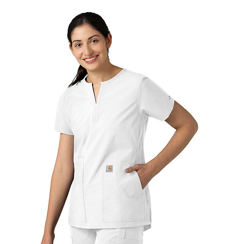 Keep all the things you need for a busy shift close at hand with this women's scrub top. The polyester-blend fabric has built-in flex so you can maneuver through small spaces or reach for supplies with ease. A cell phone pocket and earbud holders give you easy access to your electronics.