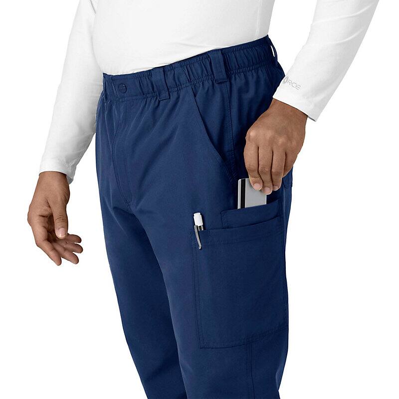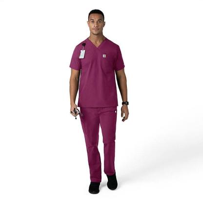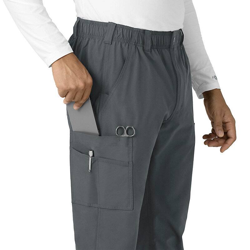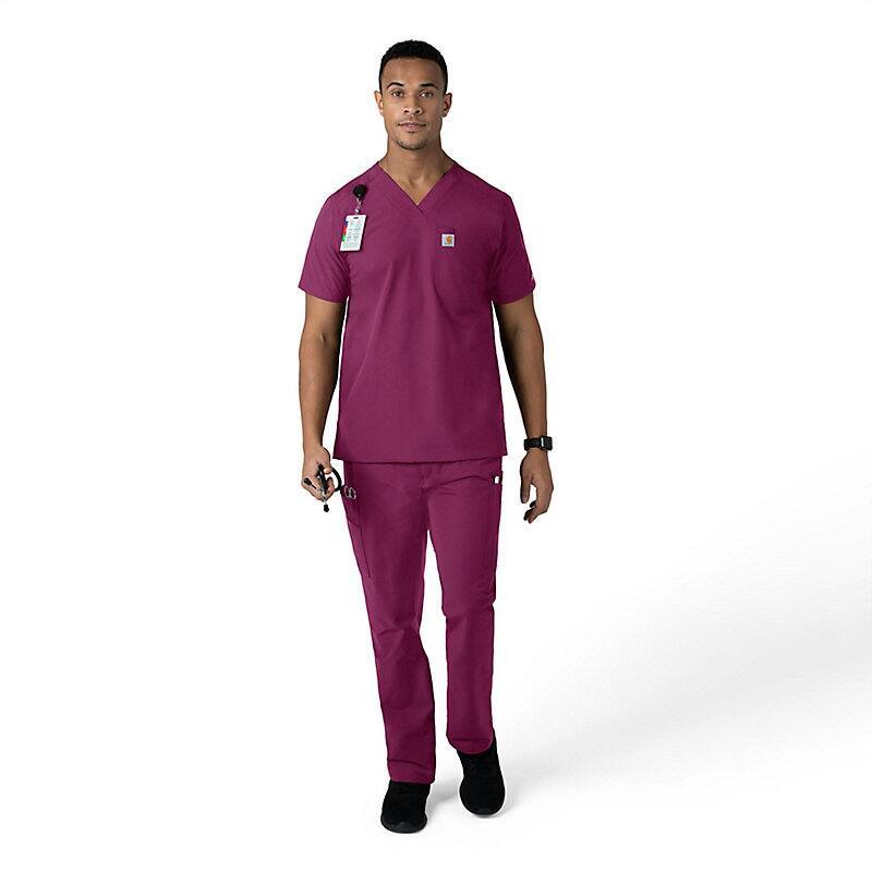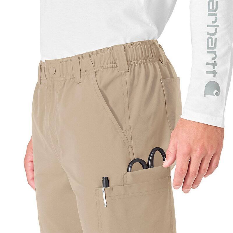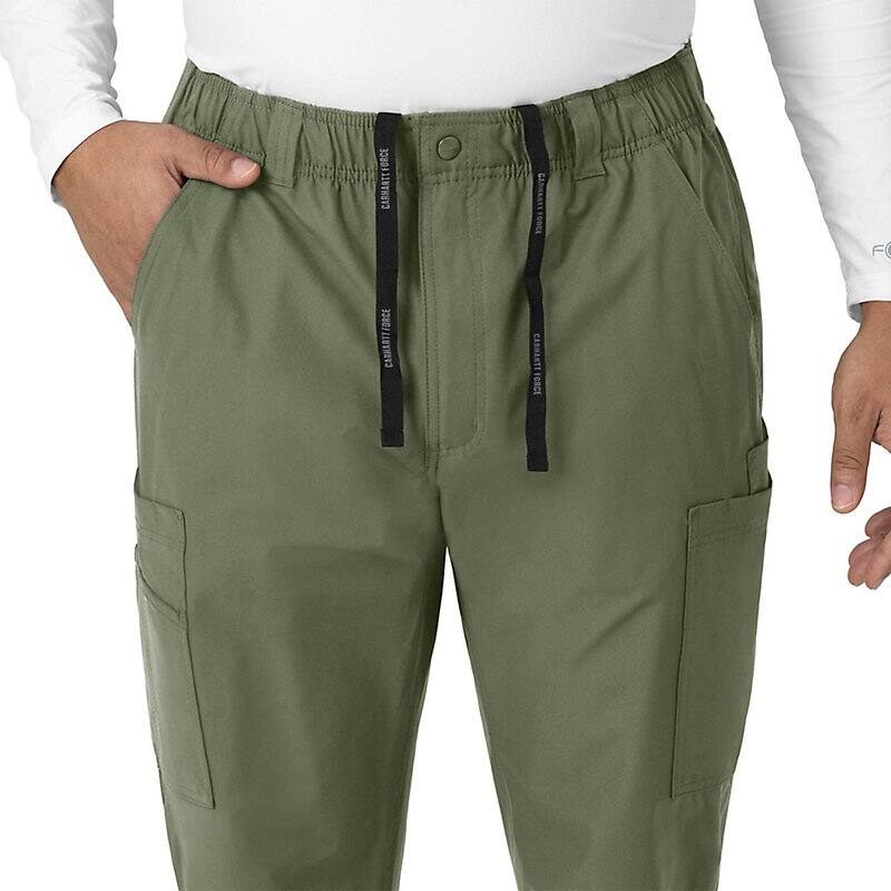 Carhartt Men’s Force Essentials Straight Leg Pant is built with all the features men ask for in medical scrubs. These scrub pants are packed with convenient features like a functioning zipper fly, snap closure, and a full elastic waistband with 7 belt loops total! With the addition of the fully constructed waistband with a drawstring, these scrubs allow you to achieve the perfect fit with every wear. The durable stretch ripstop fabric is reinforced with double-needle stitching at the inseam and added comfort thanks to the wider 7 3/4 leg opening. The fabric is enhanced with FastDry, Rugged Flex Stretch and Stain Breaker Technology so during your hectic shifts the fabric stays dry, moves with you and those inevitable stains are released with ease. Functionality is always a factor when designing Carhartt scrubs and these men’s scrub pants were built with 10 pockets! Two easy to access front and back pockets, a triple cargo pocket and angled top accessory pocket with a pen holder. An additional cargo pocket rounds out all your compartment needs for storing your much needed essentials. You won’t find a more functional pair of men’s scrub pants than this!