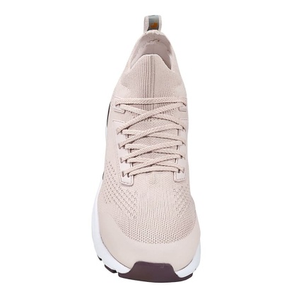 - Light pink lightweight knit upper with abrasion resistant heel and toe