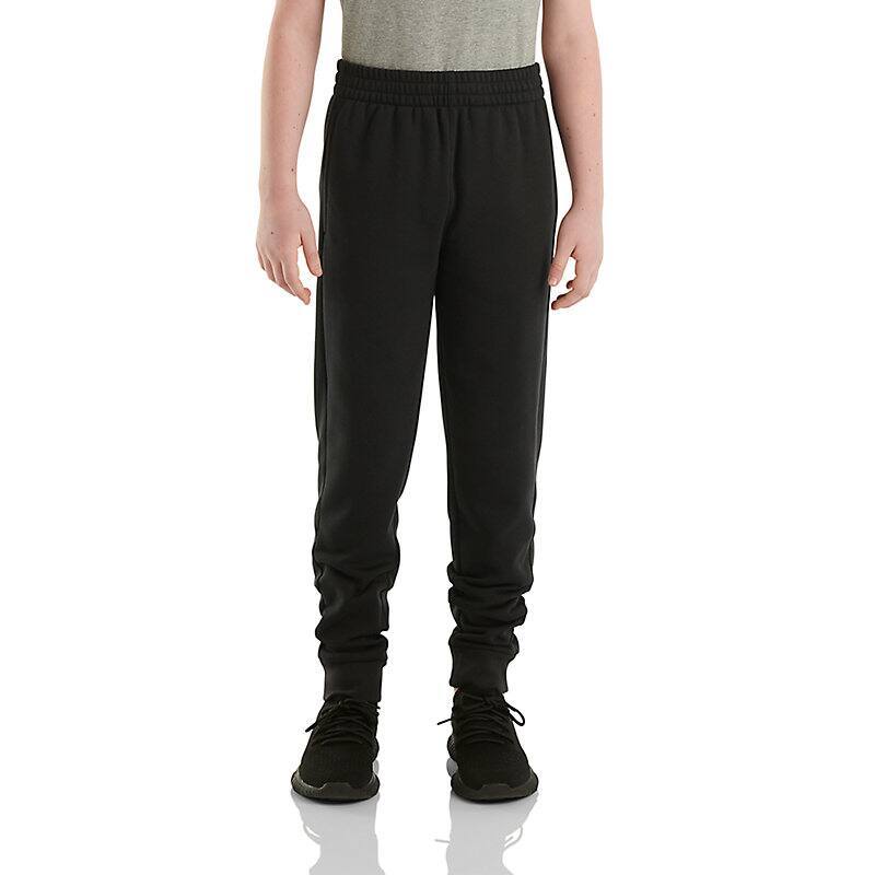 These boys' sweatpants are about to be his new favorite pair. Simple and comfortable, they're made of warm fleece. All he needs to do is adjust the waist and go. The Carhartt logo lets you know they'll last. Wash, wear, and repeat.