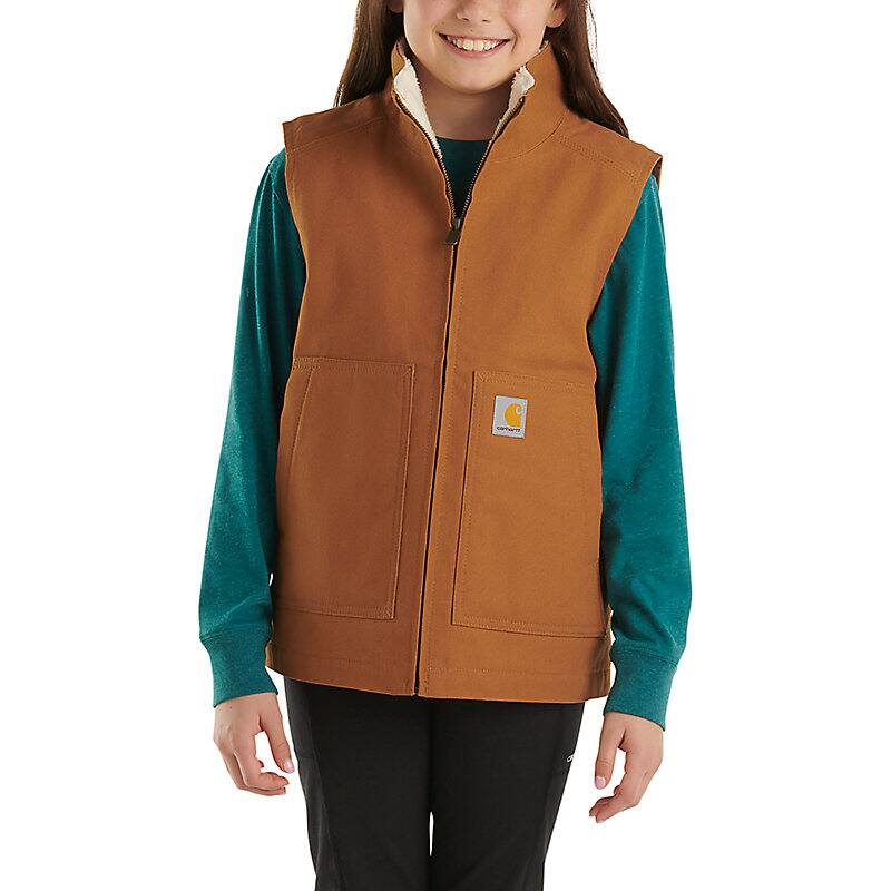 About as classic Carhartt as it gets. Gear her up for comfort and adventure when she wears this girls' insulated vest. Canvas on the outside and sherpa fleece on the inside, it's as rugged as it is warm. A name tag makes sure it comes home with her.