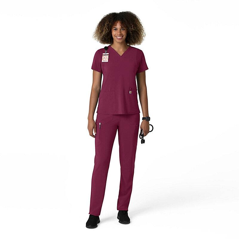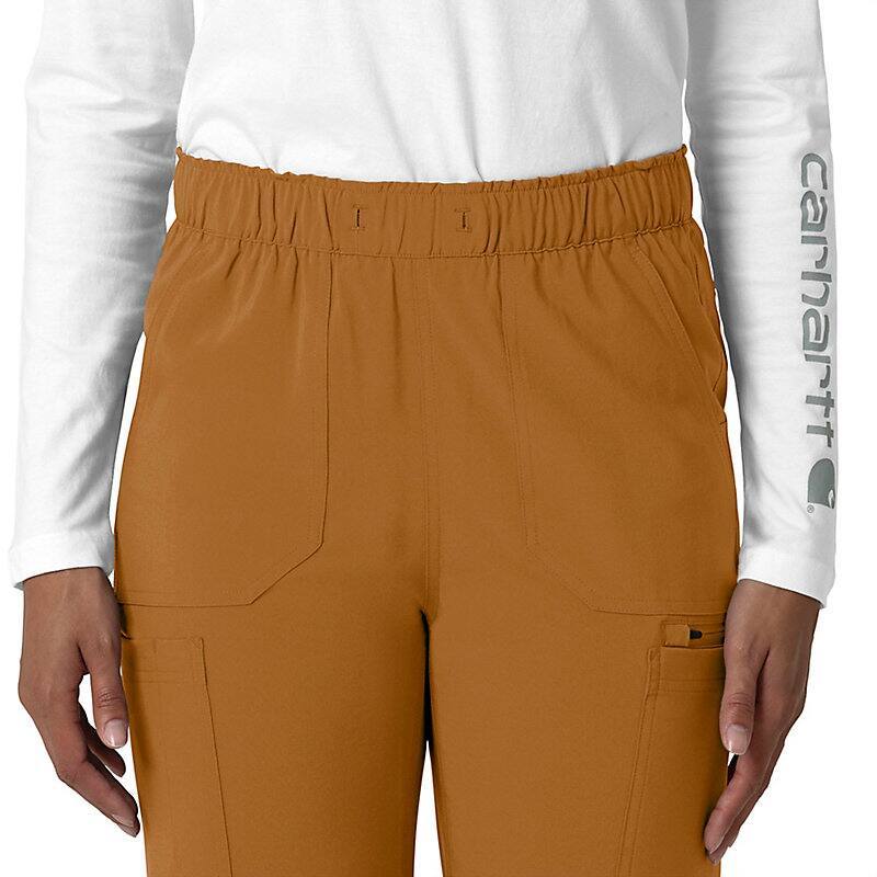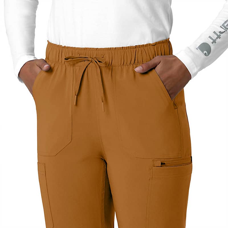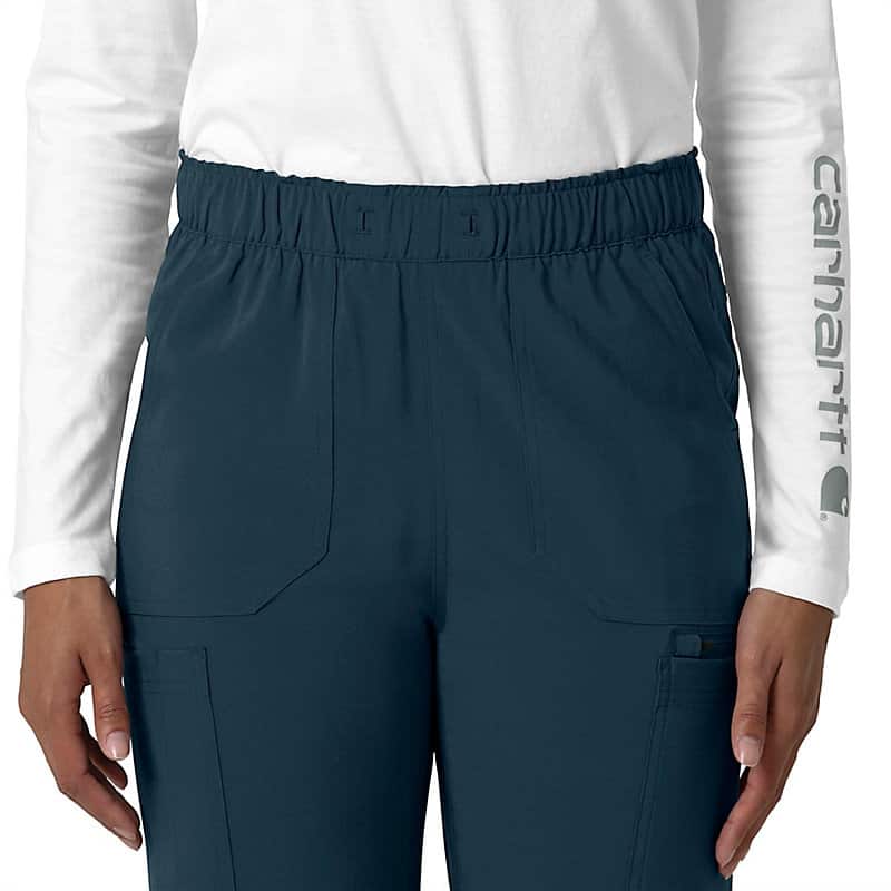 The Carhartt Women's Straight Leg Cargo Scrub Pant is the perfect companion for healthcare professionals, delivering resilience and functionality throughout demanding shifts. Crafted from a robust polyester-spandex blend, these scrubs incorporate Rugged Flex™ stretch technology, allowing effortless movement during critical tasks. The full elastic waistband ensures a secure fit, while the internal or external drawstring adds a customizable touch.