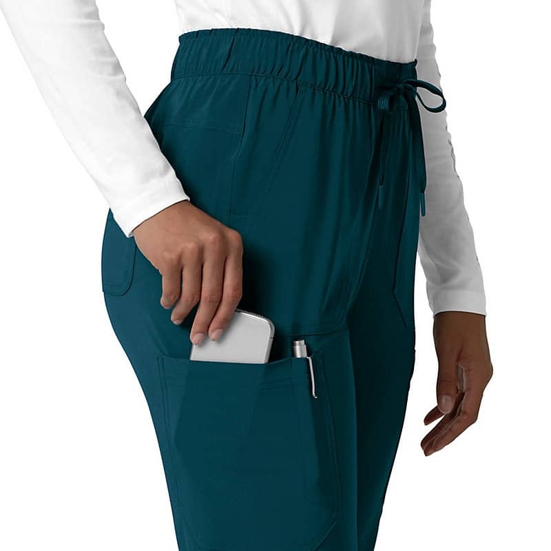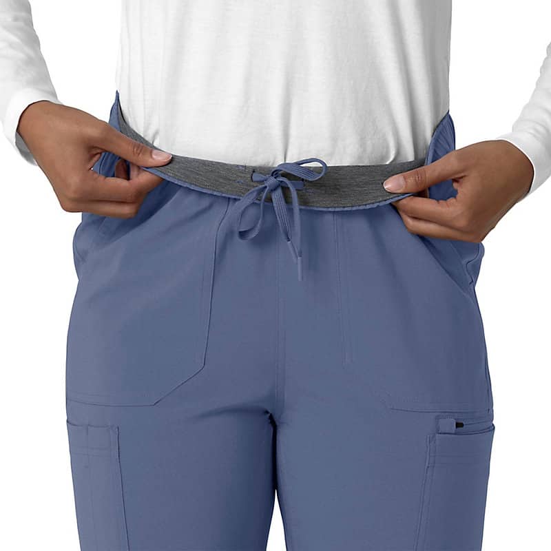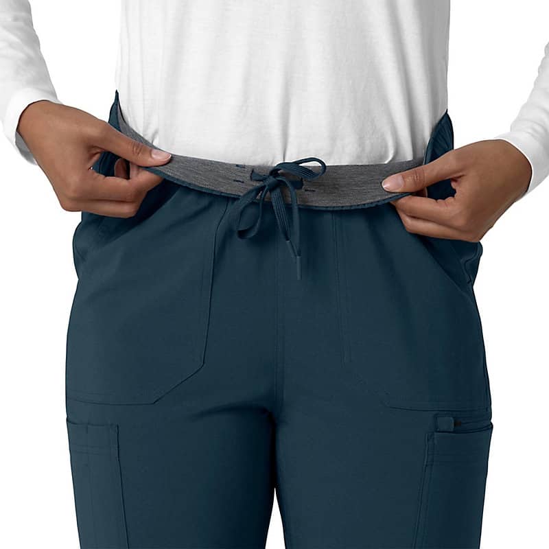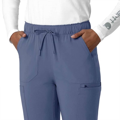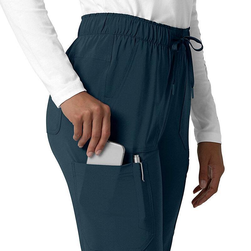 Designed for practicality, these scrubs feature multiple pockets, including deep front slash pockets, cargo pockets with pen slots and utility loops, a secure zip pocket, and Carhartt-style back pockets. The Force Cross-Flex collection's innovative fabric wicks away sweat and dries rapidly, maintaining comfort during extended wear. Double needle topstitching and vented leg hems contribute to the pants' durability, making them a reliable choice for healthcare professionals who demand both toughness and comfort on the job.
