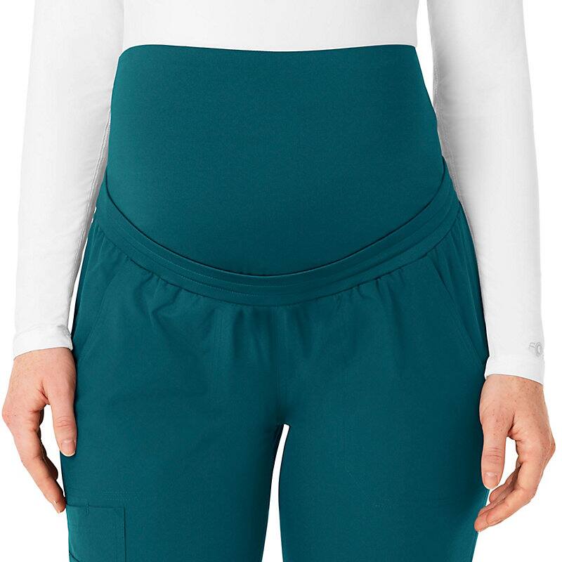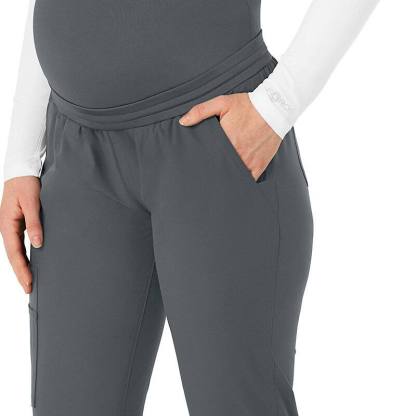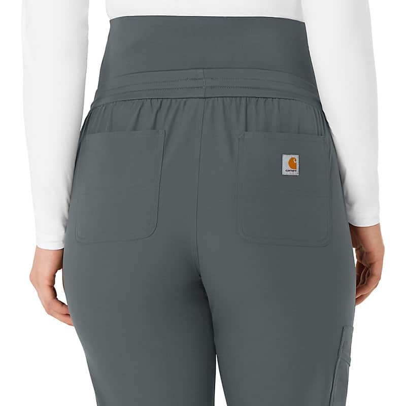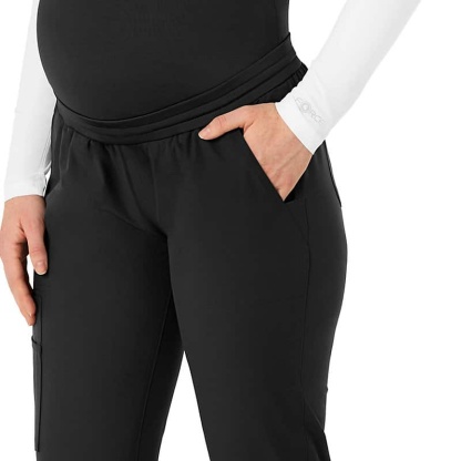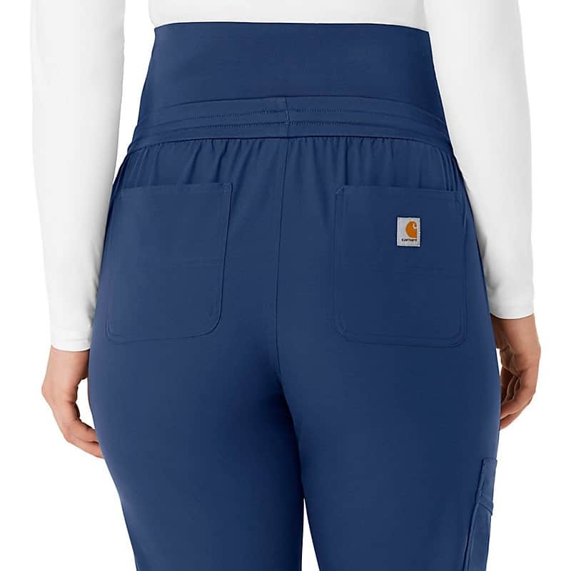 Extra comfort goes the extra mile in these maternity scrub pants. They give you all the room you need to accommodate your growing belly, making sure you stay comfortable even during long shifts and busy clinic days. You'll love the knit elastic waist that expands with you and easily adjusts with a drawstring that personalizes the fit. As for pockets, we've got you covered. Two front slash pockets give the look clean-lined style while offering on-the-go storage for essentials, and three cargo pockets deliver even more room plus a pen tack. Two additional back pockets take care of the rest. Knit cuffs add cozy detail that draws in the jogger-style silhouette. These scrub pants are part of our Force Essentials collection, designed with technologies that help you to perform at your very best. They wick sweat, dry fast and resist stains, so you look and feel professional all through your shift.