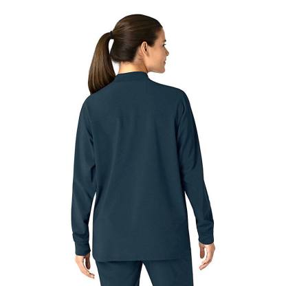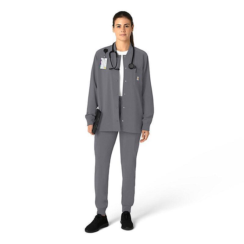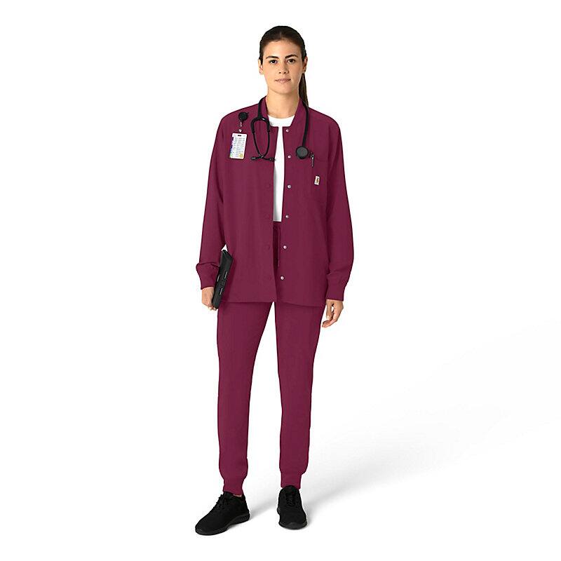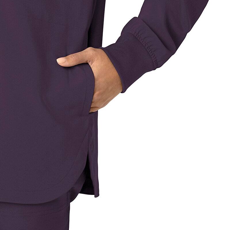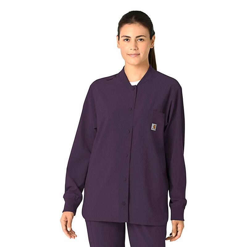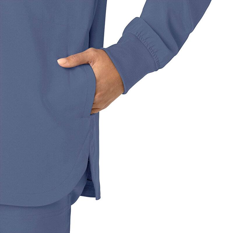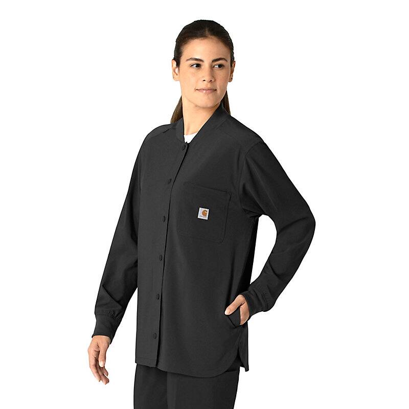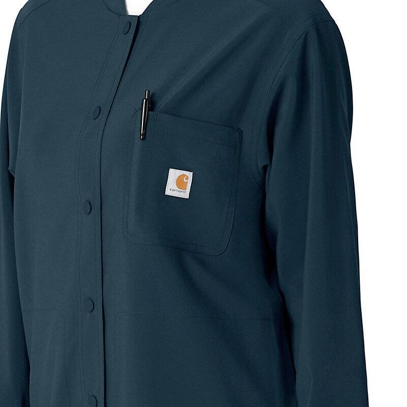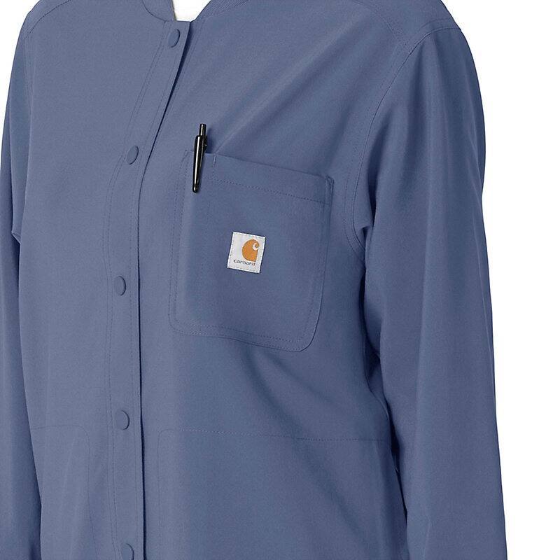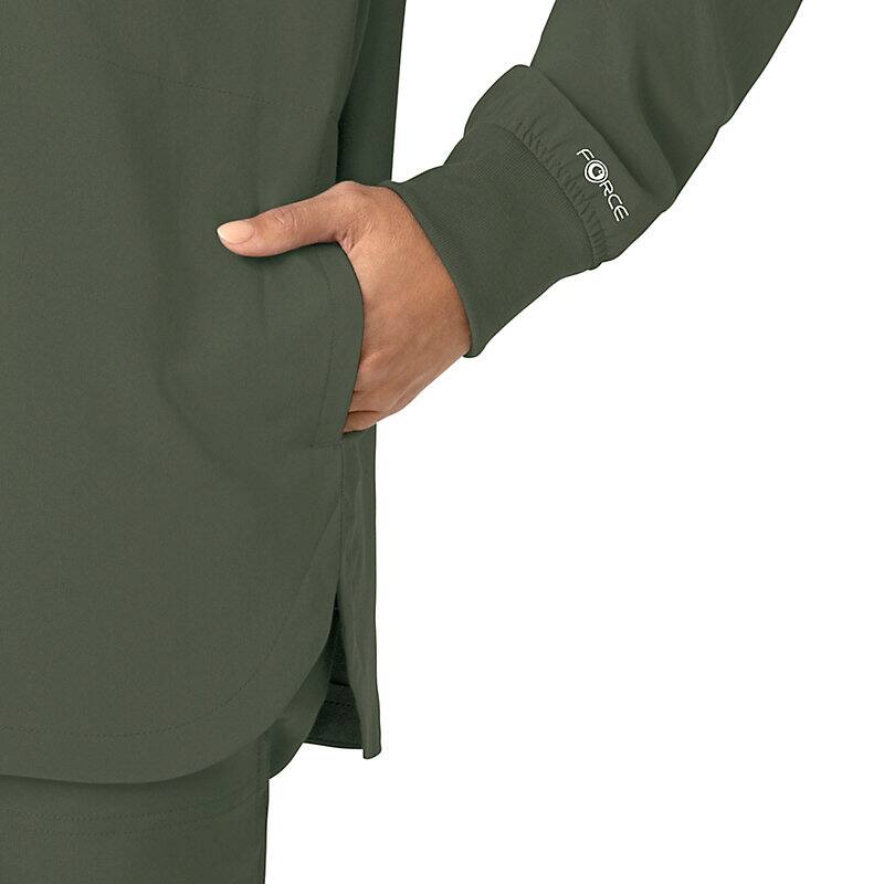 Versatility is the name of your game. You're always ready to switch gears, whether it's completing your own tasks or helping your fellow nurses with theirs. This women's shirt jacket does the same, blending the polished style of a shirt with the coverage of a jacket. It's the perfect layer for days when temperatures fluctuate or the air conditioning varies from room to room. Built for durability, it's made with a stretchy, comfortable fabric that includes micro ripstop to handle the rigors of your daily life at work. A knit collar and snap-div front accent the design for a cozy touch that adds just the right amount of tailoring. Keep everything where you need it with a chest pocket built with a pen slot plus internal loops for your badge or glasses. The lower front pockets are oversized, and there's even a pocket just for your phone for fumble-free access. This shirt jacket is part of our Force Cross-Flex collection, designed to help you excel on every shift. It wicks sweat and dries fast, and it's built to move with Rugged Flex™ stretch technology.