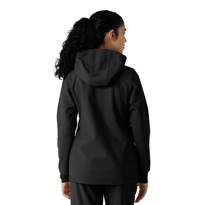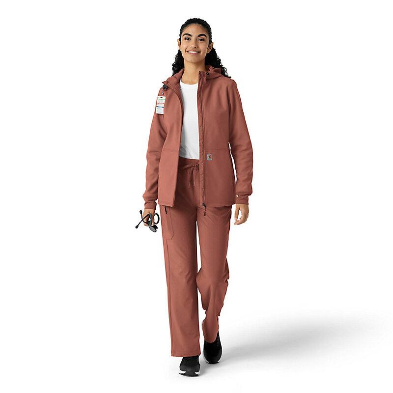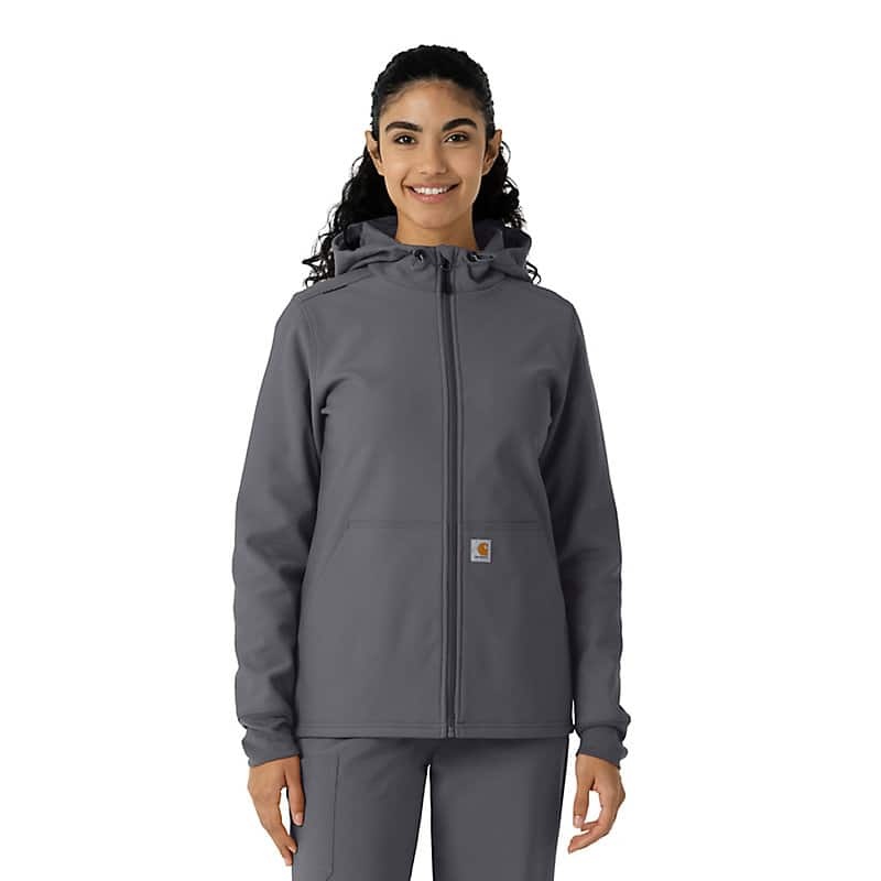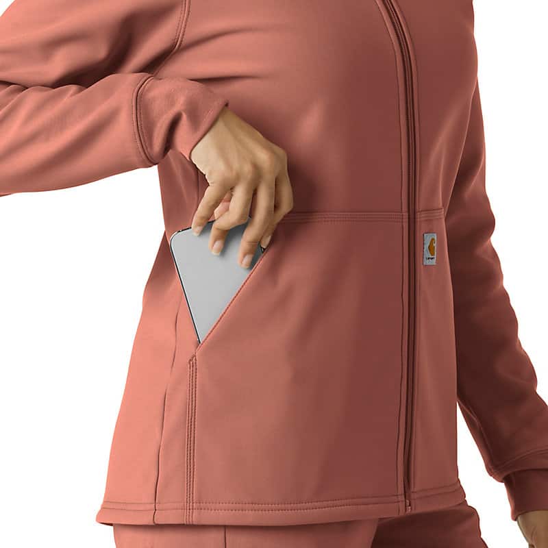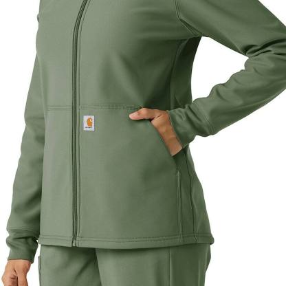 Stay cozy and confident with the Carhartt Women's Bonded Fleece Hoodie, designed for warmth and style as you move between chilly environments. Crafted from soft bonded fleece, this full-zip hoodie features a chin guard to prevent chafing and a three-piece hood with a drawcord for a snug fit. Two front handwarmer pockets with flaps and an internal stethoscope pocket offer practicality, while fitted knit cuffs make it easy to slide on gloves. The slightly longer back curved hem ensures a flattering fit. Embrace warmth and functionality during your busy workday with this essential hoodie!