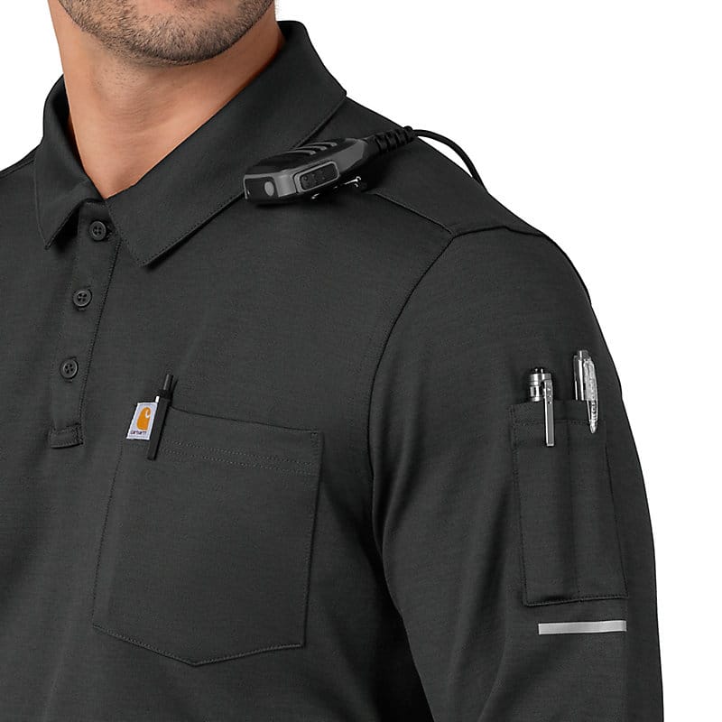 When you're on the front lines of emergency response, you need a uniform that can keep up. This men's long sleeve polo top is built for those critical moments when anything can happen. Crafted from a substantial heavyweight poly pique fabric, it provides reliable durability and a professional appearance that instills confidence. The long sleeves offer added coverage and protection, while the breathable fabric ensures comfort even in high-pressure situations. This polo is equipped to handle the demands of emergency response with a range of specialized features. Multiple pockets provide secure storage for essential tools and equipment, keeping everything you need organized and within reach. Integrated mic clips offer convenient access to communication devices, allowing for clear and efficient communication during critical moments. A utility loop provides a secure attachment point for keys or other small essentials, and a reinforced bartack ensures your pen is always at the ready for documentation. With its combination of durable construction, specialized features, and a professional appearance, this long sleeve polo top is a trusted choice for those who dedicate themselves to emergency response. It's a uniform that reflects the seriousness of your profession while providing the comfort and functionality you need to perform at your best, no matter the challenge.