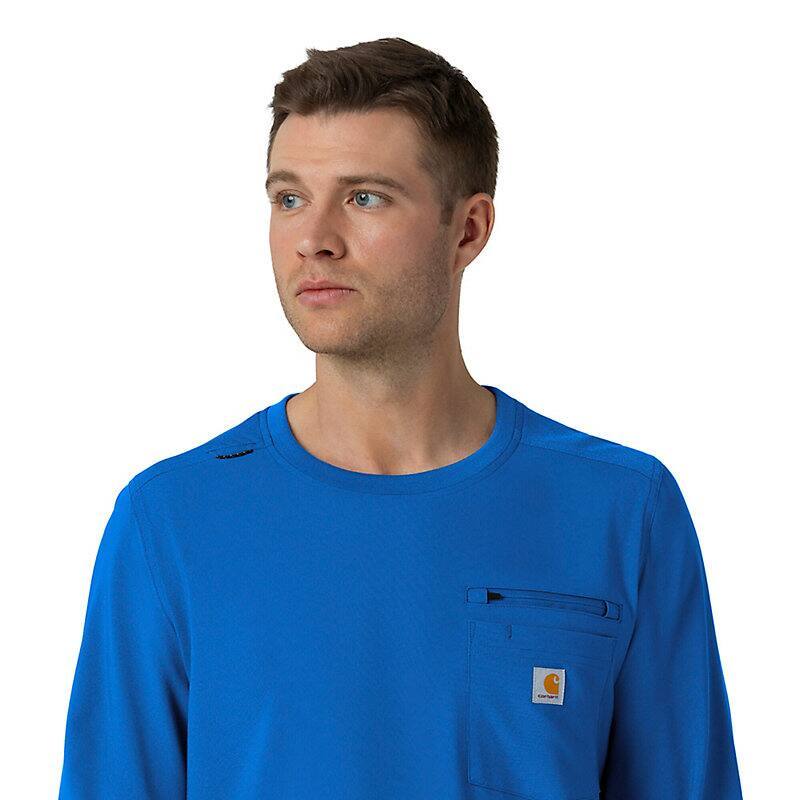 You need a scrub top you can count on, and this men's Carhartt long sleeve top is designed to be that piece. It's built for repeated wear, so you know it will hold up through many shifts. The long sleeves give you extra warmth and coverage. This scrub top has plenty of pockets to keep your things organized. A pen slot keeps your pen handy, and the badge loop lets you show your ID clearly. The knit collar and cuffs add comfort and give it a relaxed style. It's made to be comfortable for long hours. You can move easily in it. The strong fabric means it will last. This Carhartt long sleeve scrub top is a good choice for anyone needing a dependable scrub top.