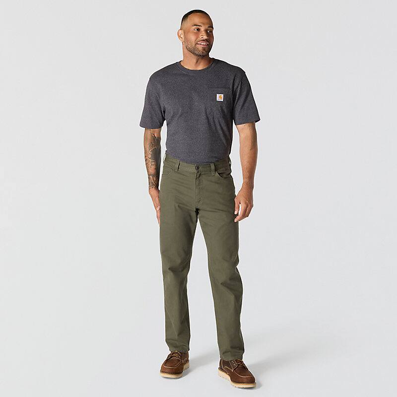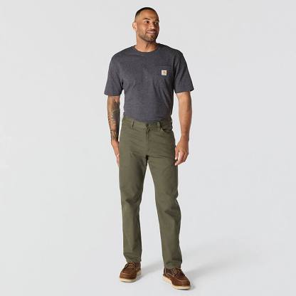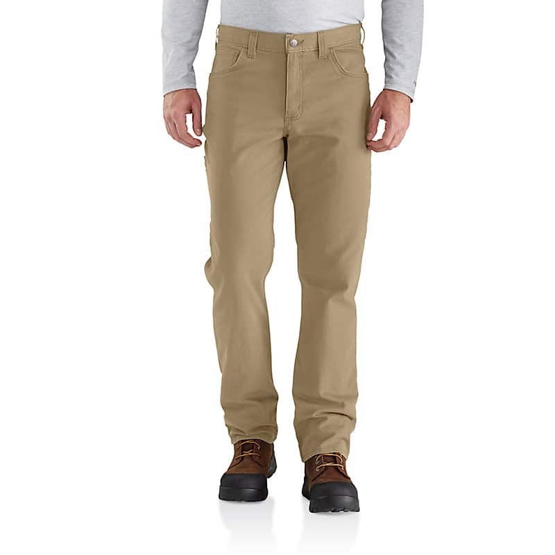 Go from framing a wall to a meeting with clients to a family dinner without needing to change in these men's 5-pocket work pants. Rugged Flex® stretch and a relaxed fit mean you'll have an unrestricted range of motion as you reach up to the ceiling, bend down to the floor, and climb up ladders and machinery. The clean look can be dressed up with a tucked in shirt, but they're tough enough to get the job done. Throw your phone in the dedicated side pocket, lace up your boots, and get to work in this 5-pocket pant formerly know as the Rugged Flex® Rigby Five Pocket Pant.