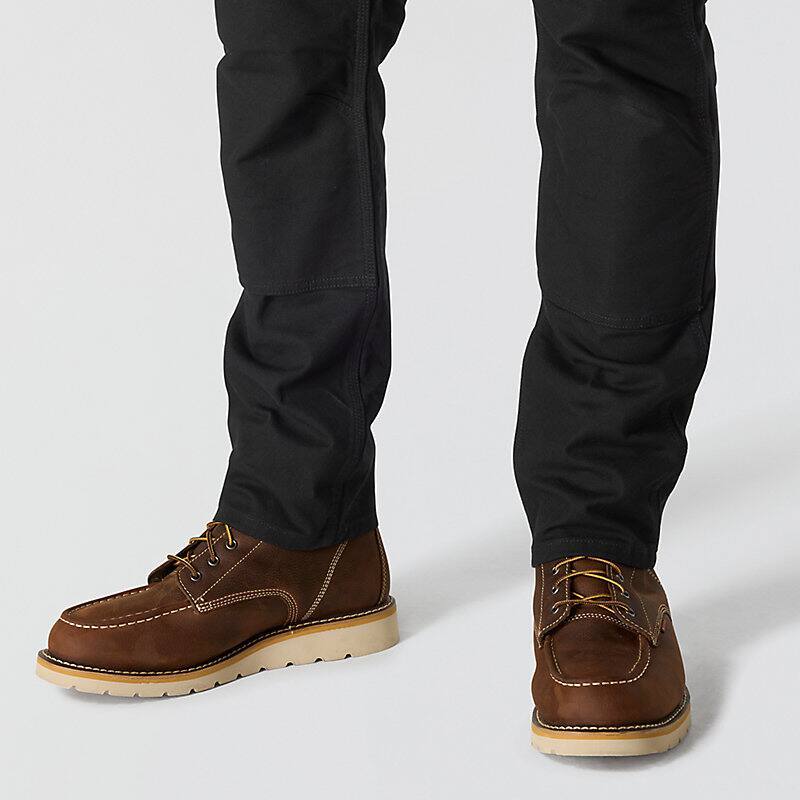 Carhartt double-knee pants are constructed for durability and comfort to get you through long days on the job. These double-knee work pants feature heavyweight cotton duck material with enough flex to kneel, squat, and climb easily. They're compatible with Carhartt knee pads for additional comfort and durability and include plenty of pockets for stashing tools. Fitted through the hips and thigh, this fit has a slimmer cut and cuffs that fit over most work boots.