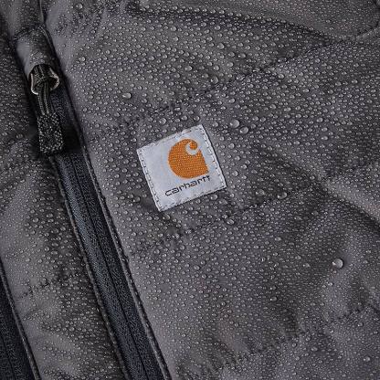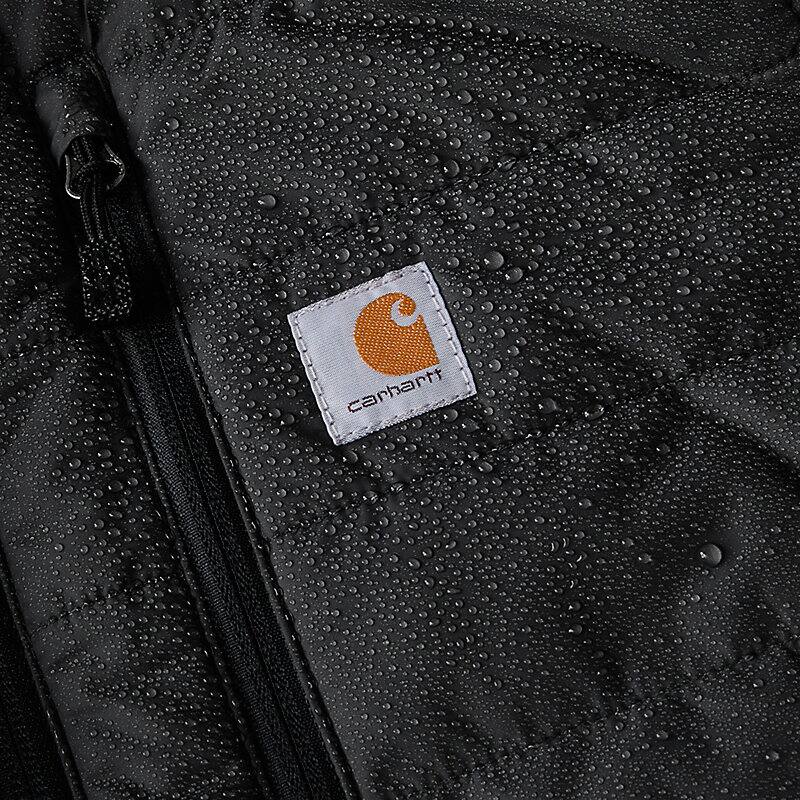 - Carhartt-strong, triple-stitched main seams, mock-neck collar with full-zip front
