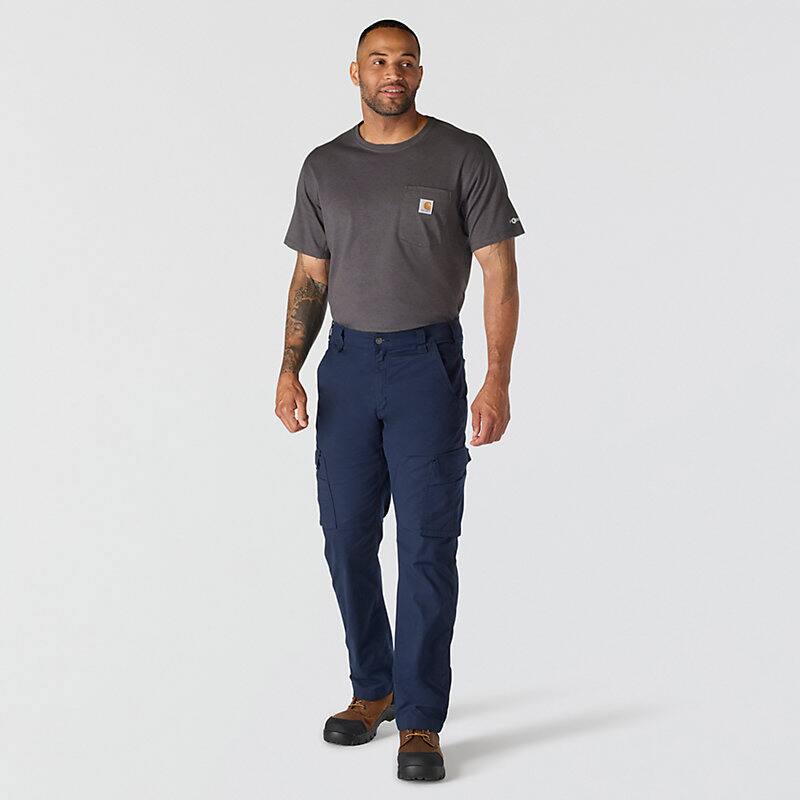 Keep cool on the job in these men's Carhartt cargo pants. The lightweight ripstop build wicks away sweat and dries fast for all-day comfort. Built-in stretch and a gusseted crotch make them easy to move in.