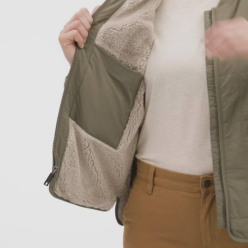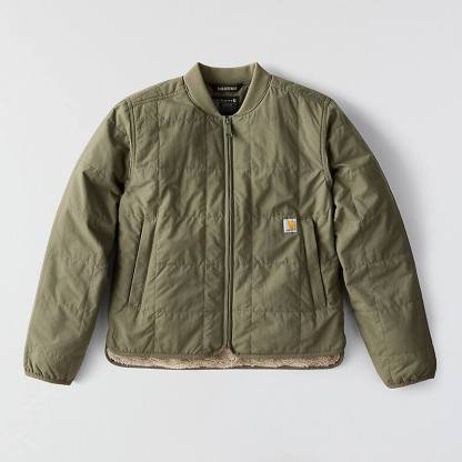 Keep working through cool, drizzly weather in this women's quilted jacket. Insulated for warmth and made with water-repellent technology that shrugs off light rain. Sherpa fleece in the upper body adds comfort, and side vents let the air in. A loose fit offers plenty of room to move.