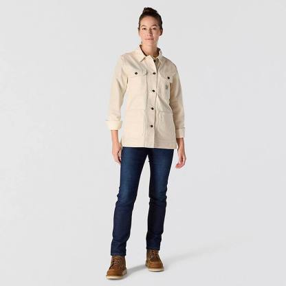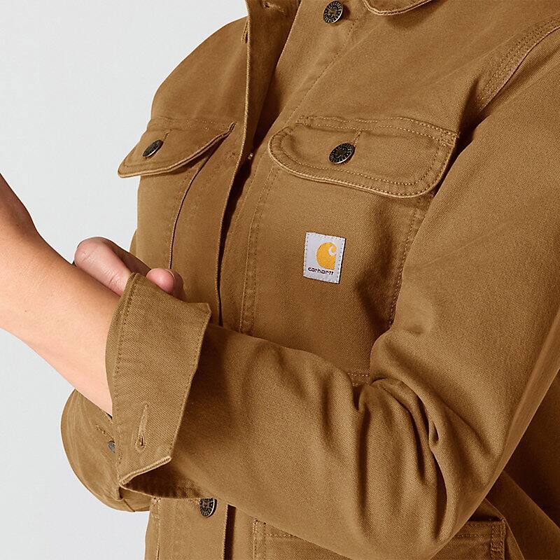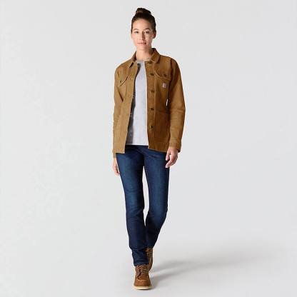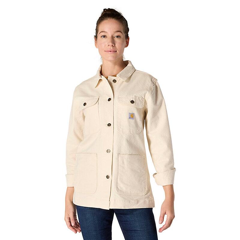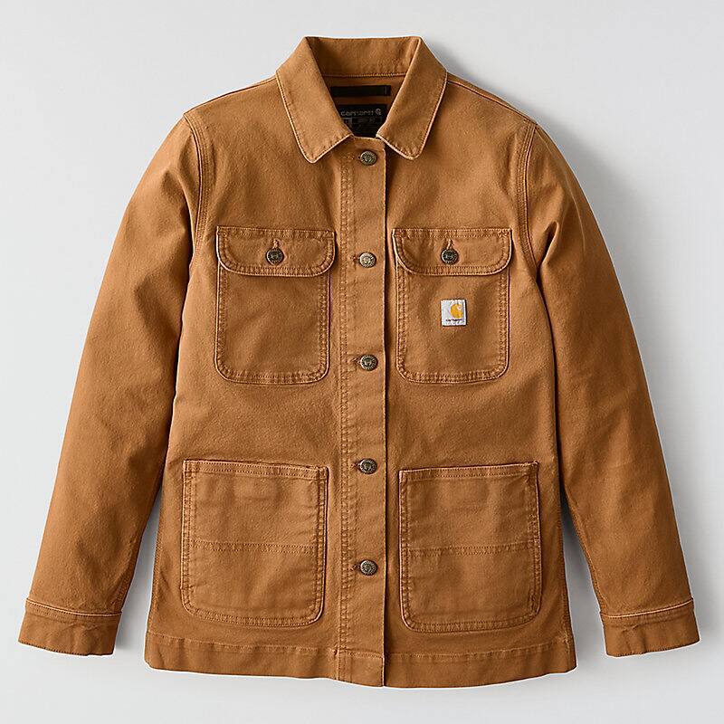 A Carhartt classic, this women's chore coat is built to move from stretch cotton canvas. Made for a loose fit that allows for easy layering. Featuring multiple pockets for storage.