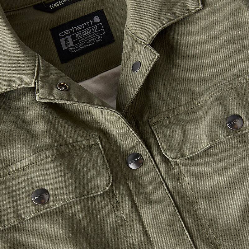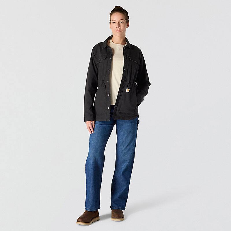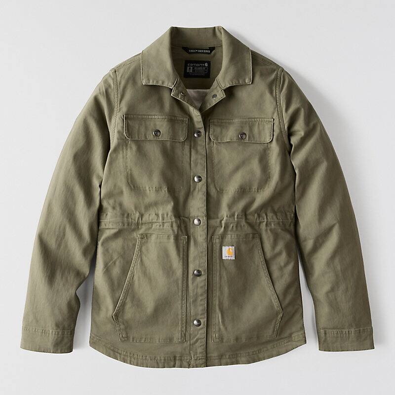 Your new standard for comfort, this women's canvas coat is part of Carhartt's TENCEL™ series. Made from durable canvas with TENCEL™ fibers for softness and breathability. Built with an adjustable waist and cuffs, droptail hem, and secure pockets inside and out.