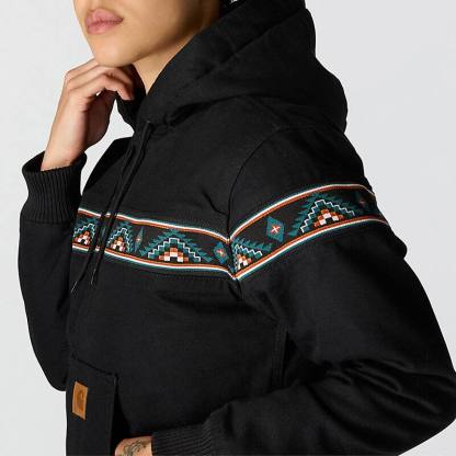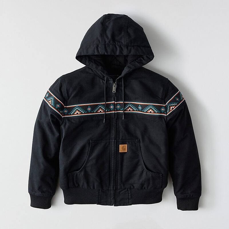 Rugged and ready for hard work, the women's Bethany Yellowtail jacket features a knit panel with an authentic pattern created by Bethany Yellowtail of the Northern Cheyenne and Crow Nations, a Native American woman-owned brand dedicated to sharing authentic Indigenous designs with the world. The jacket's durable, soft duck canvas is insulated throughout and features Wind Fighter® tech to seal out windy conditions. A loose fit allows for easy layering and movement.