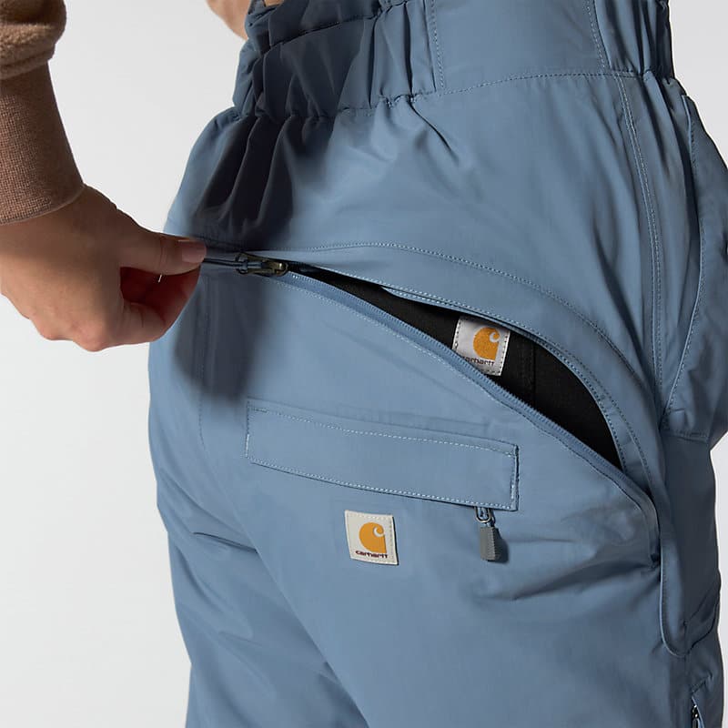 Carhartt durability meets all-weather coverage and insulation in these women's waterproof bibs. A combination of a Storm Defender® waterproof, breathable protection and an insulated, wind-resistant build seals out cold, wet weather. Synthetic insulation in the legs seals in heat without bulk. Ankle-to-knee side zips make for easy on and off over boots, and a drop seat makes for easy breaks. A relaxed fit includes a little extra room in the seat and thighs.
