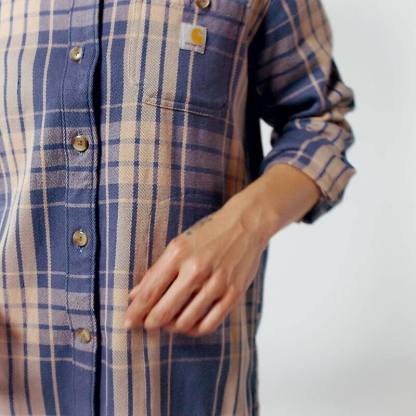 Discover the extra-soft feel of Carhartt's cotton and TENCEL™ Fiber blend weave. This women's TENCEL™ Fiber shirt in a twill plaid offers all-day comfort and breathability for work, camp, or casual weekend wear. Built-in flex offers an unrestricted range of motion, and a loose fit offers extra room to move and bend.