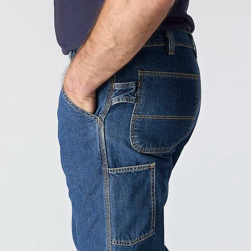 Stay covered on the job in these men's flame-resistant dungarees. Made from comfortable FR denim with tough triple-stitched seams. Built with a loose fit that's roomy through the seat and thigh with cuffs that fit easily over most work boots.