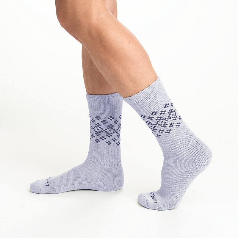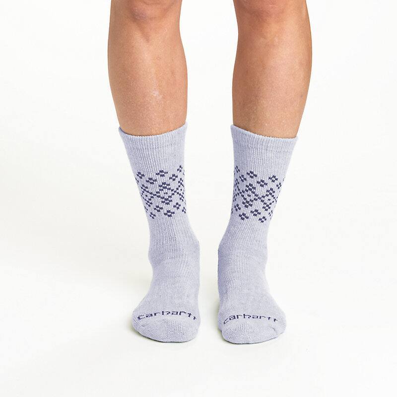 Jobs that keep you moving all day are hard on your feet and socks. These women's midweight crew socks stand up to active days. The Wool blend naturally regulates temperature while wicking sweat and resisting odor. Cushioning at the heel, toe, and arch supports long days on your feet, and abrasion-resistant yarns at the heel and toe extend durability.