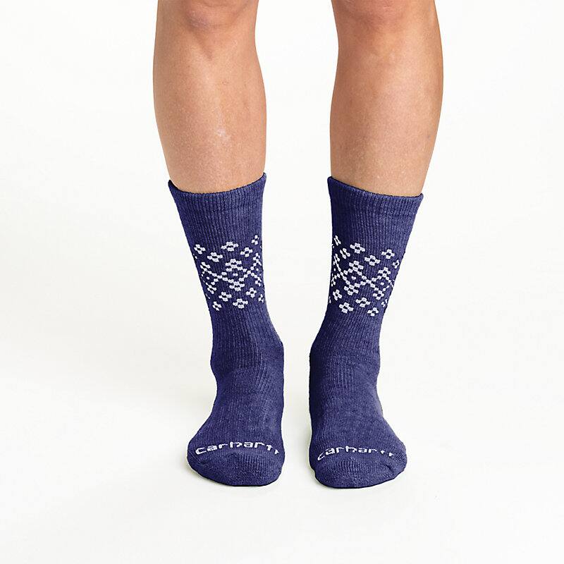 Women's Midweight Synthetic-Wool Blend Fairisle Crew Sock 2-Pack