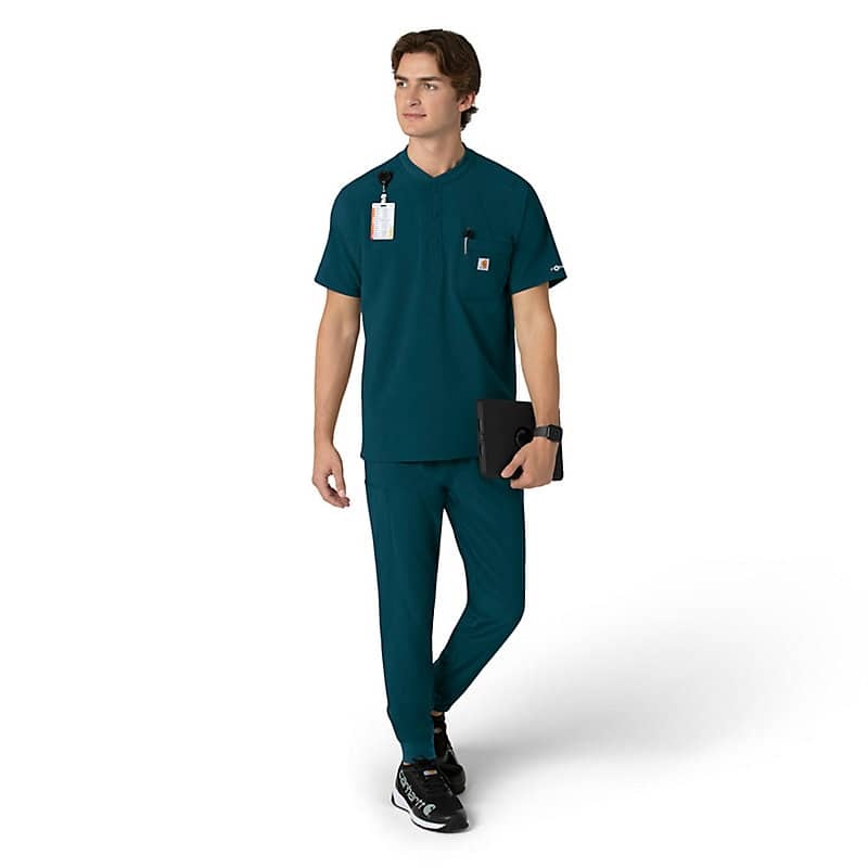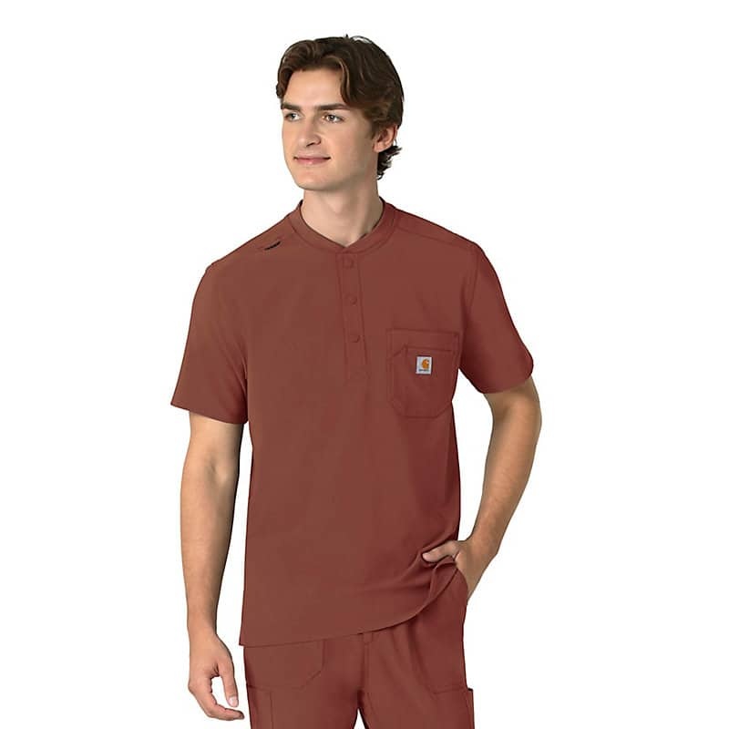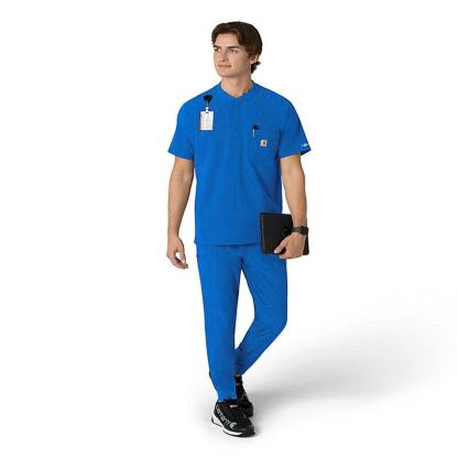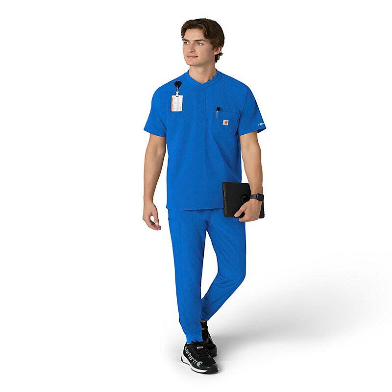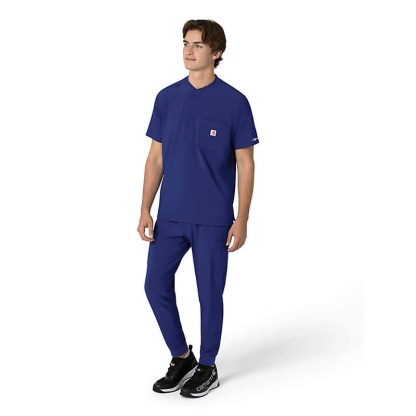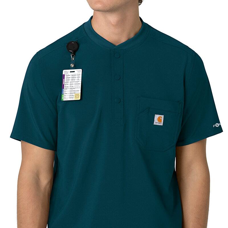 Getting dressed for work should give you the cool, calm confidence you need for a successful shift every time. That's where this men's Henley scrub top comes in, delivering plenty of comfort with essential utility. Store smaller items in the triple-stacked chest pocket, built with a hidden zipper for cleverly concealed storage. Keep your pen handy at all times in a dedicated slot for stay-put convenience. Display your badge on a shoulder loop so it's ready and visible when you need it but out of your way when you don't. Made from a stretchy material with micro ripstop, this scrub top takes care of durability for the long haul. Vents at the side hem let you move and bend with ease, while a snap-div placket accents the Henley neckline. Both classic and fresh, it gives you versatility in styling with a longer hem in the back to tuck in or leave relaxed.